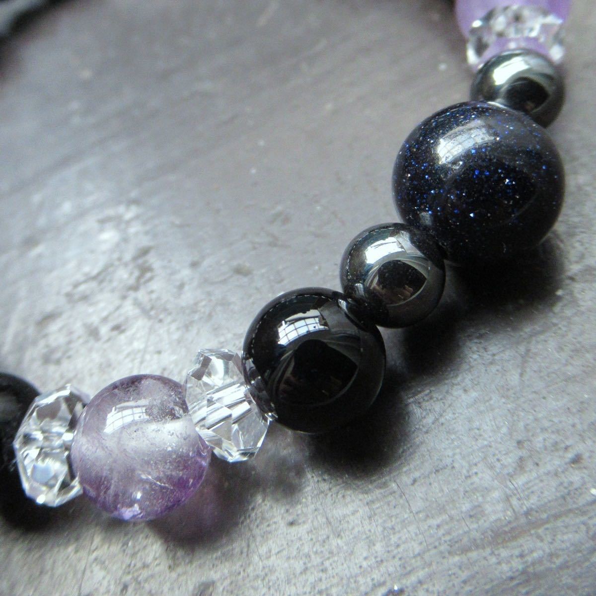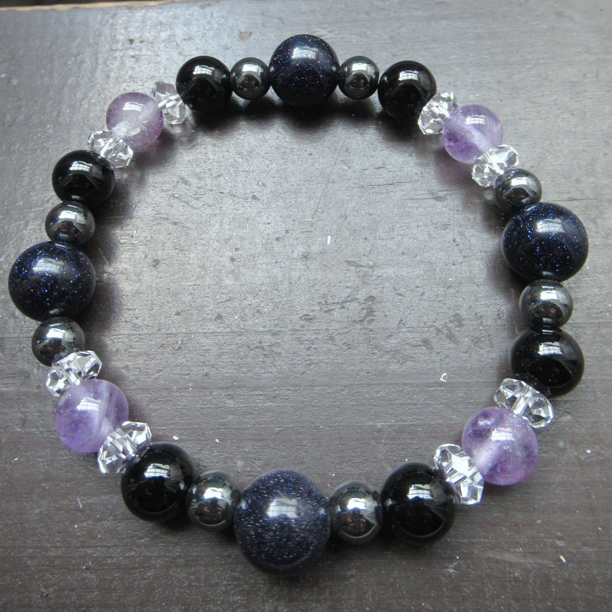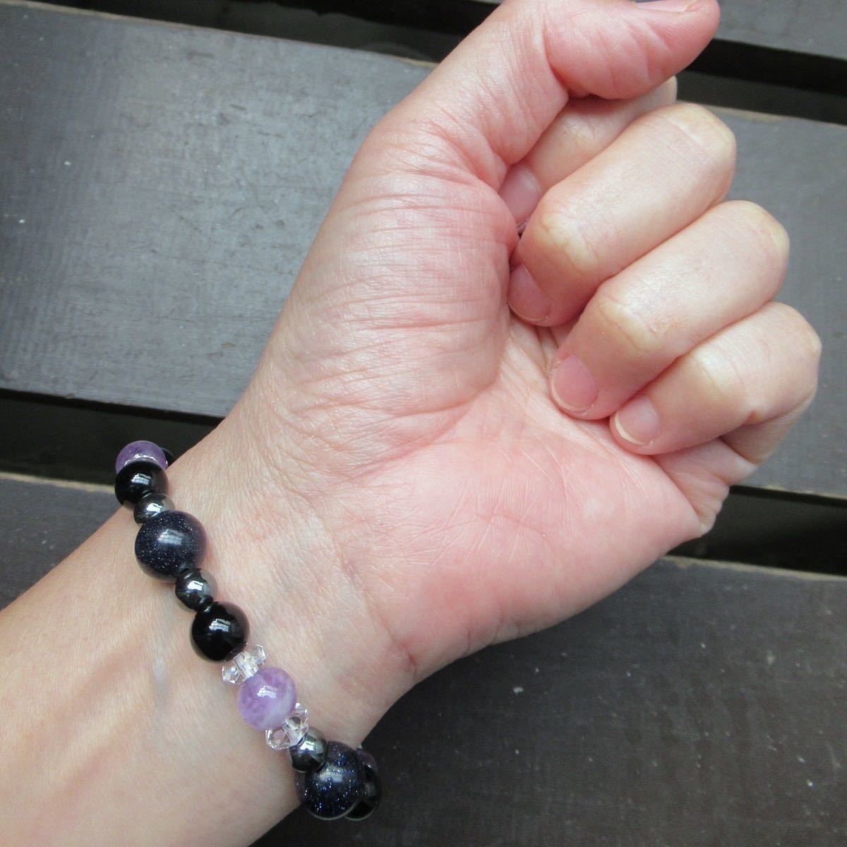 ブルーゴールドストーンxアメジストxオニキスブレスレット 天然石 パワーストーン