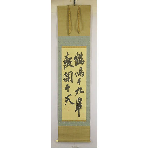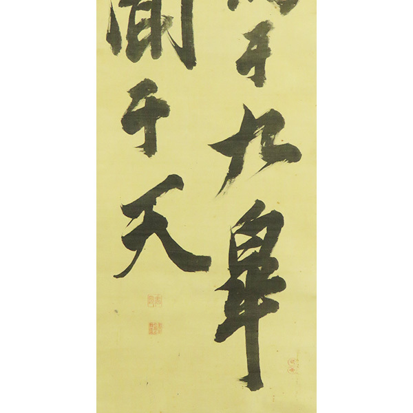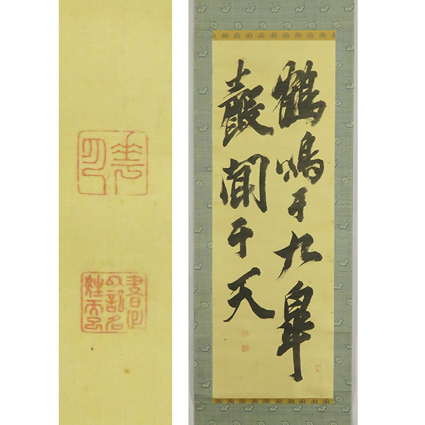 B-5171【真作】松平楽翁(定信)② 肉筆絹本 二行書 掛軸/大名 幕府老中 白河藩主 徳川家斉を補佐して寛政の改革 書画