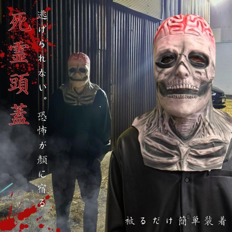 リアル 死霊頭蓋 骸骨マスク 脳みそ骸骨 被り物 ハロウィン Xmas Christmas 仮装 パーティーグッズ イベント用品 面白 変装