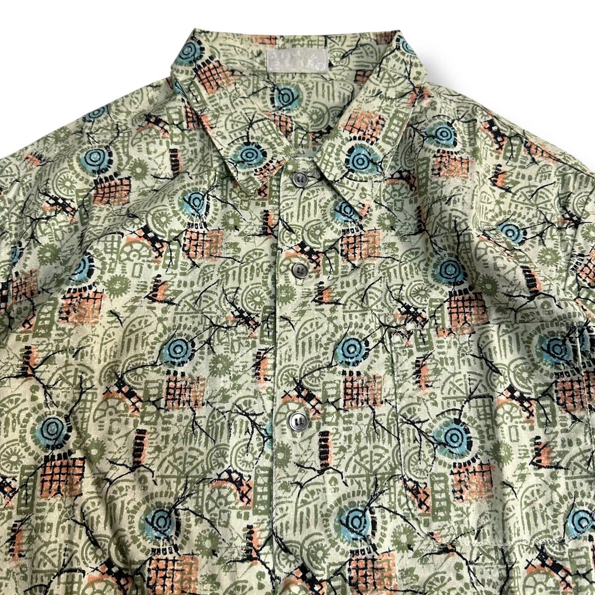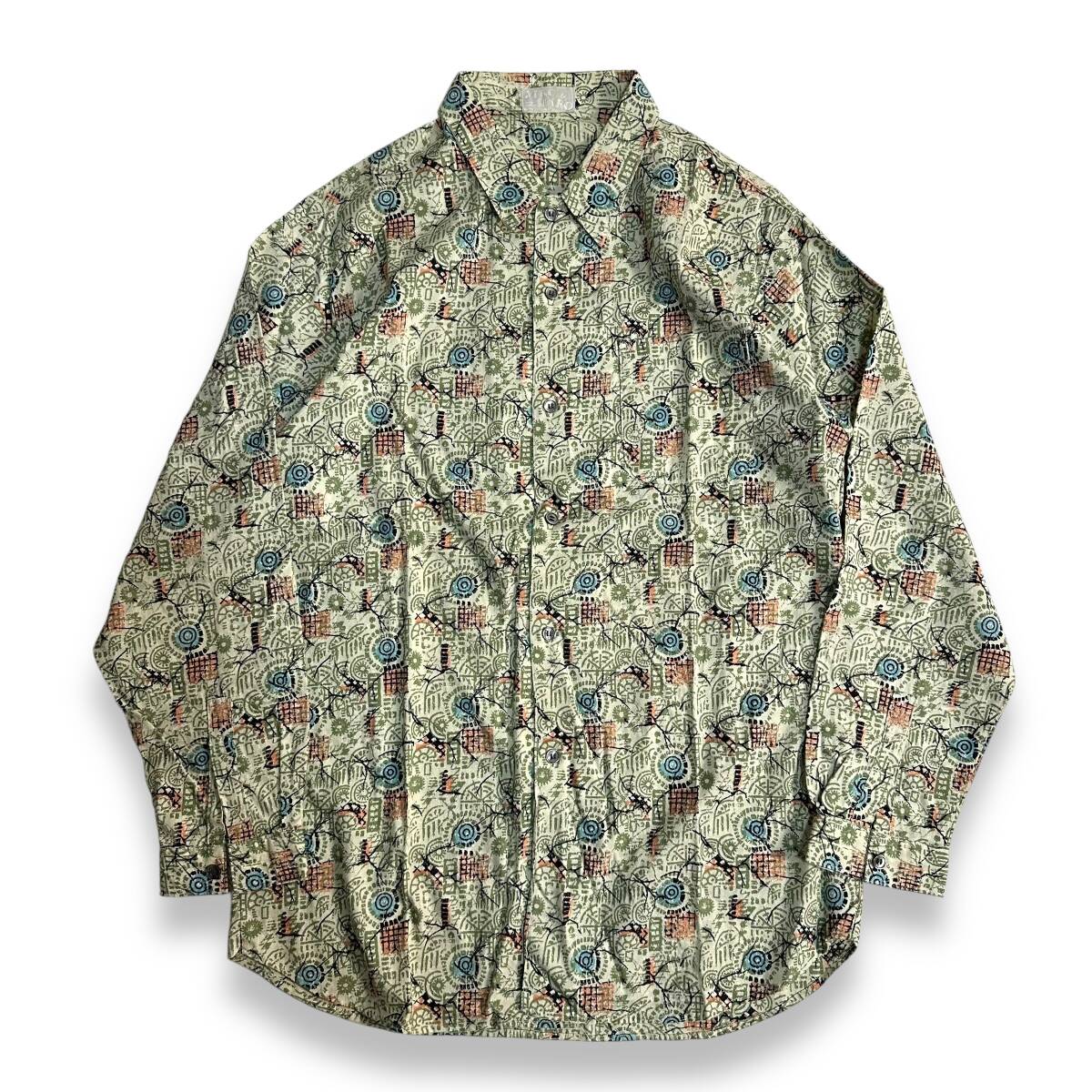 【JIRO&JIRO】VINTAGE 90s 総柄デザイン アート レトロ長袖シャツ オールド 古着 ビンテージ古着 日本製