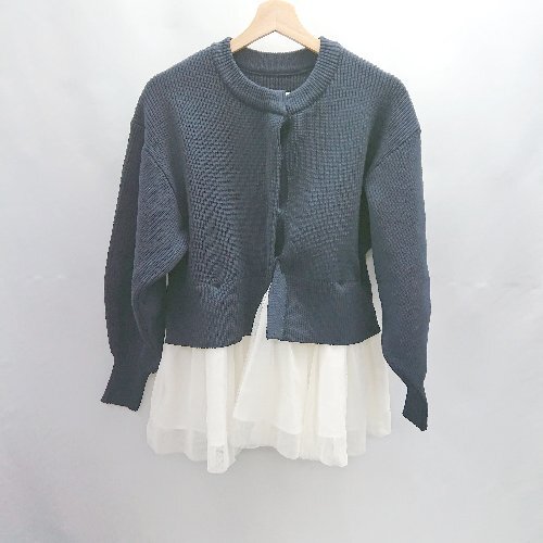 ◇ ⊇◎●未使用● Ti. ALEFS ペプラム レイヤード 長袖 ニットカーディガン サイズM ネイビー レディース E