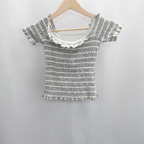 ◇ Φ⊂ dazzlin ダズリン ボーダー オフショル クロップド丈 半袖 カットソー サイズ F グレー系 レディース E