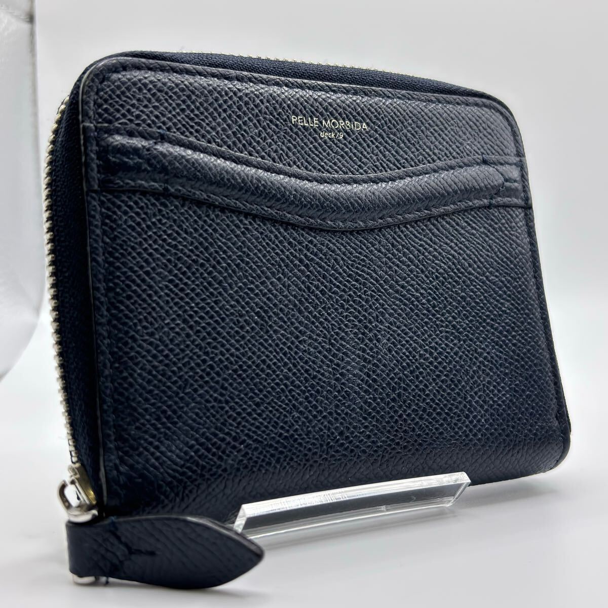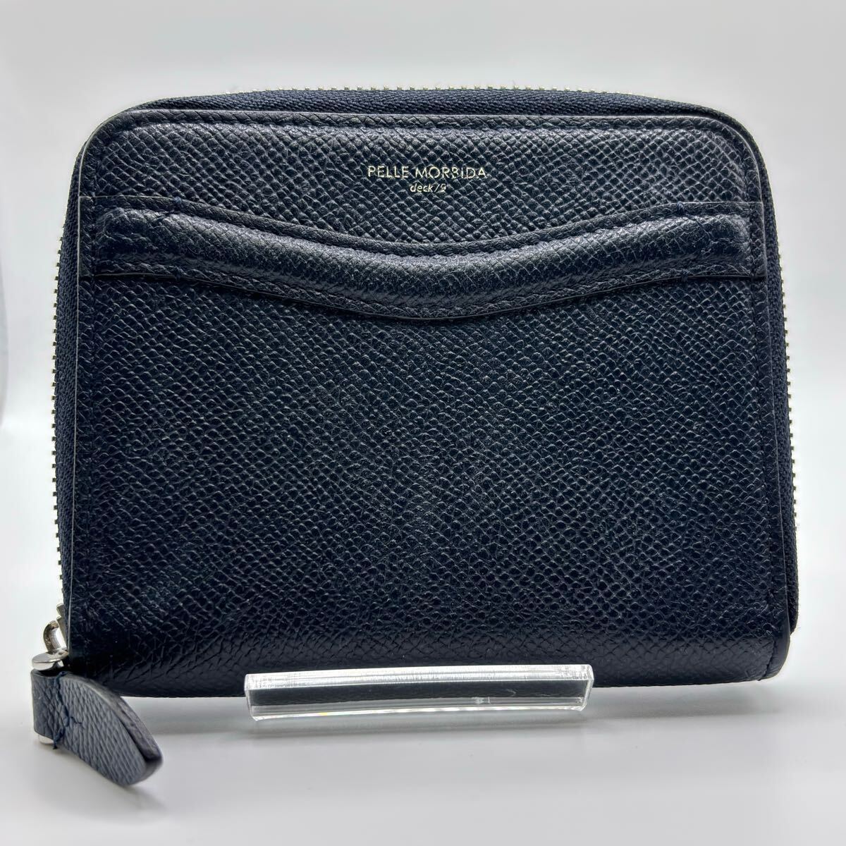 【希少】PELLE MORBIDA ペッレモルビダ レザー 折り財布 ラウンドファスナー ネイビー
