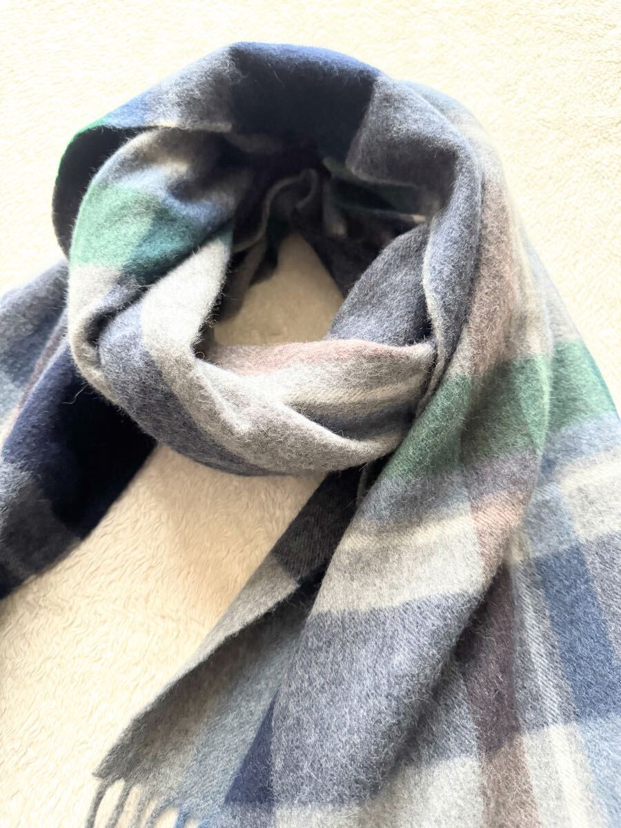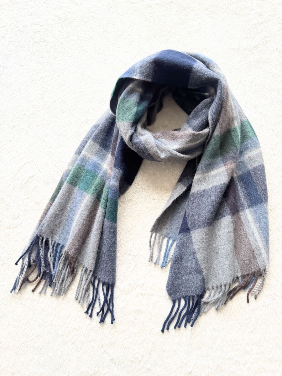 ・上質なウールとアンゴラを混紡した素材を使い計算されたバランス感、ボリュームあるシルエットにチェック柄デザインがとてもお洒落なマフラーになります♪