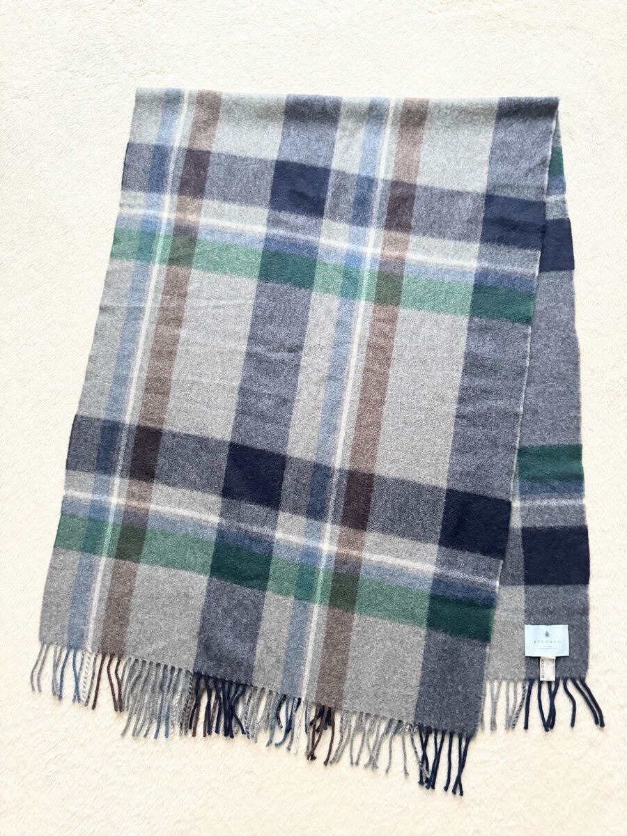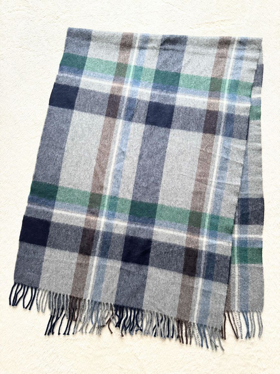大判 BEGG&CO スコットランド製 マフラー チェック アンゴラ混 グレー ネイビー ブラウン ホワイト