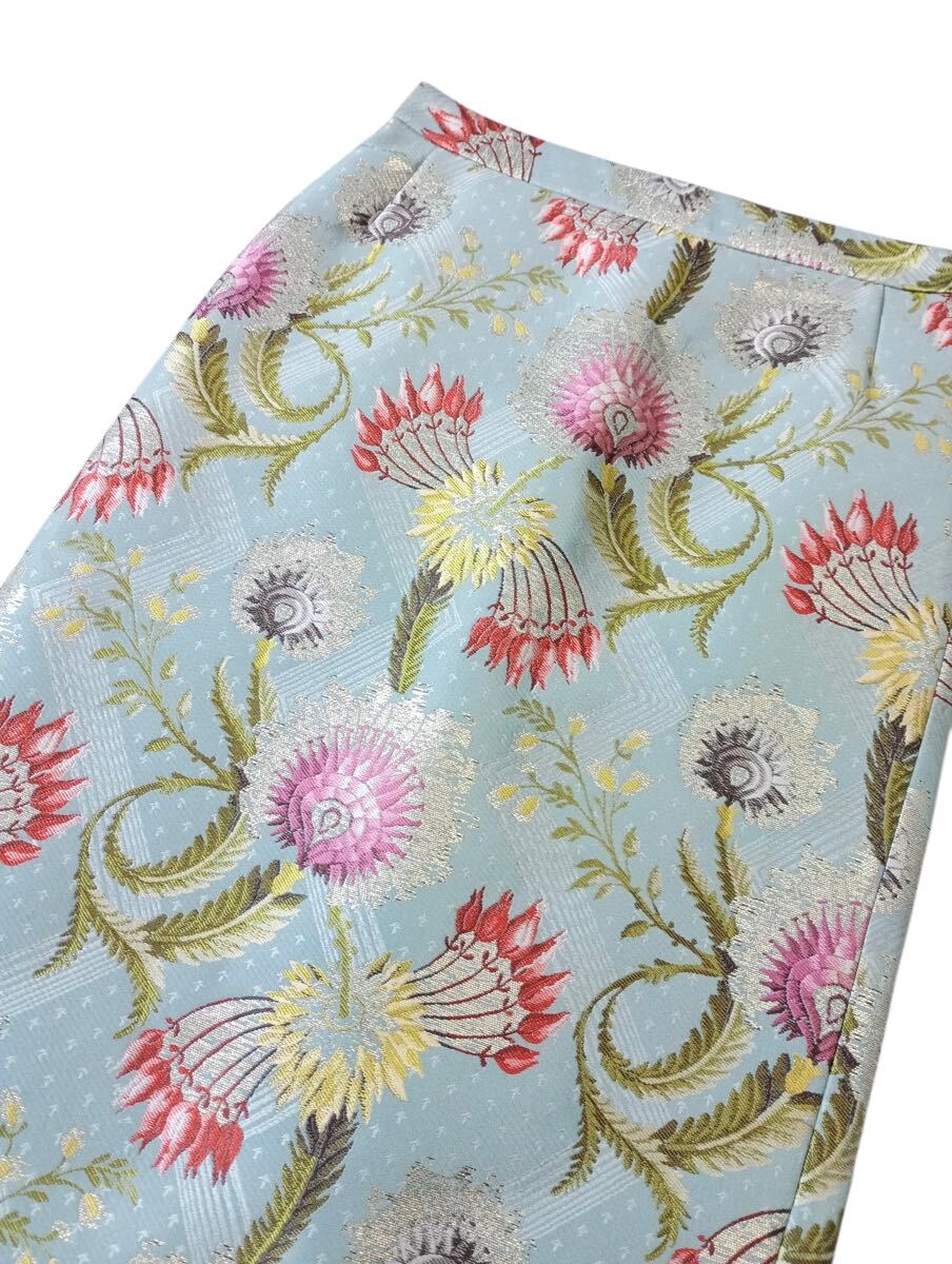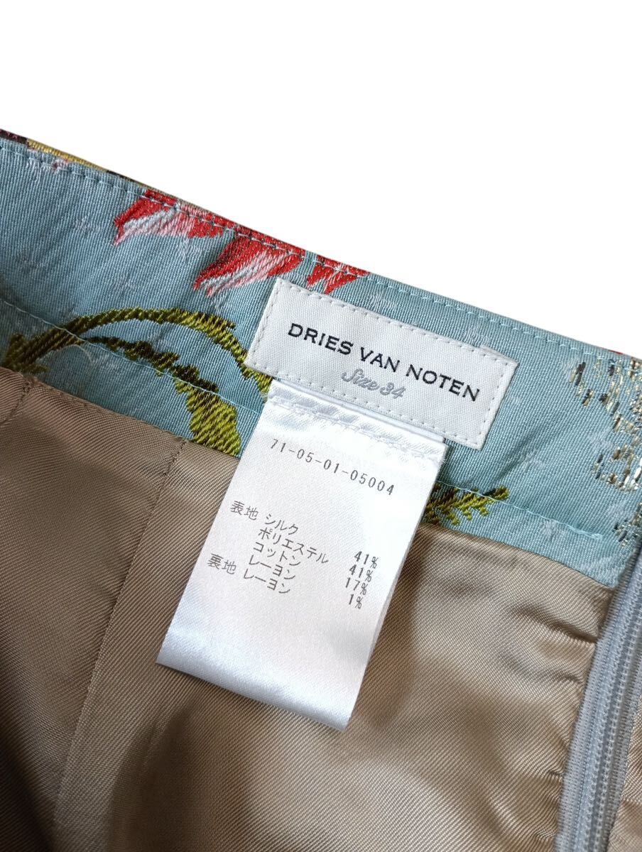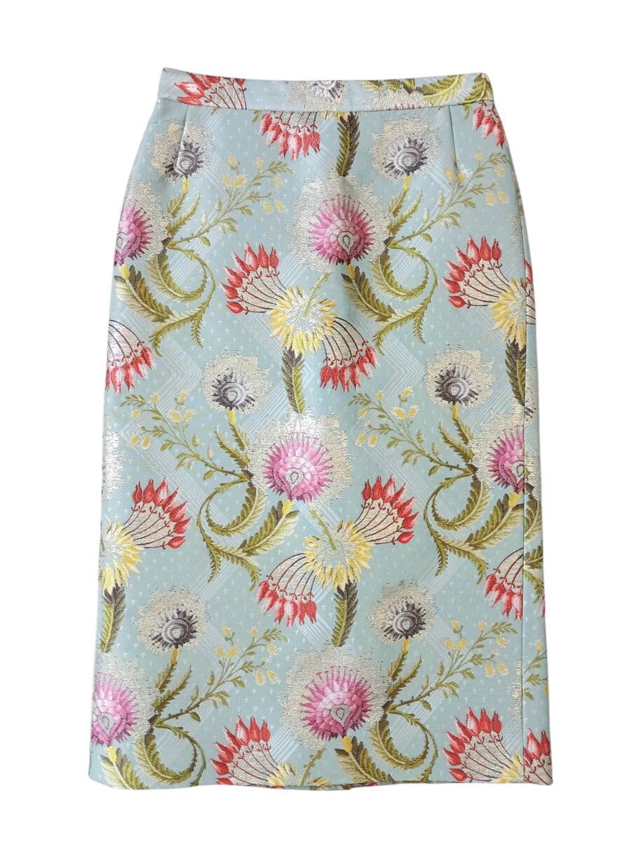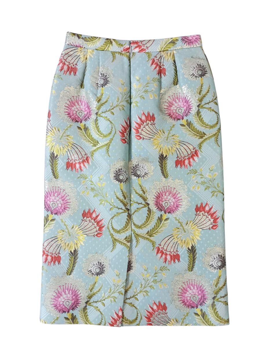 (D) DRIES VAN NOTEN ドリスヴァンノッテン ボタニカル フローラル シルク ポリエステル スカート 34 ライトブルー 花柄 (ma)