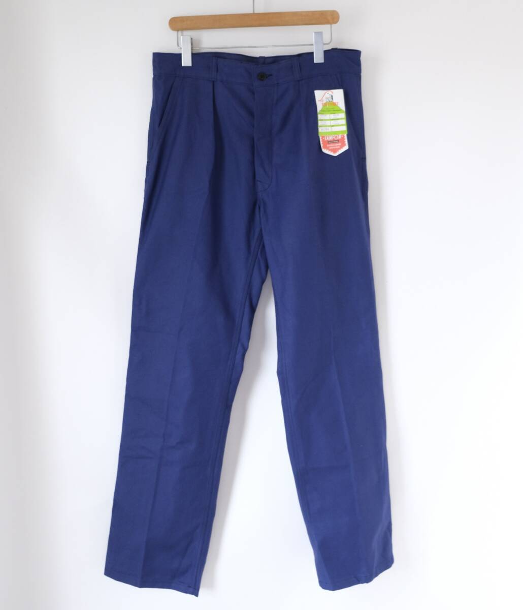 デッドストック【 フランス ビンテージ 】コットン ツイル パンツ トラウザーズ / インクブルー 青紺系 / 46 / ヨーロッパ ワーク 軍 古着