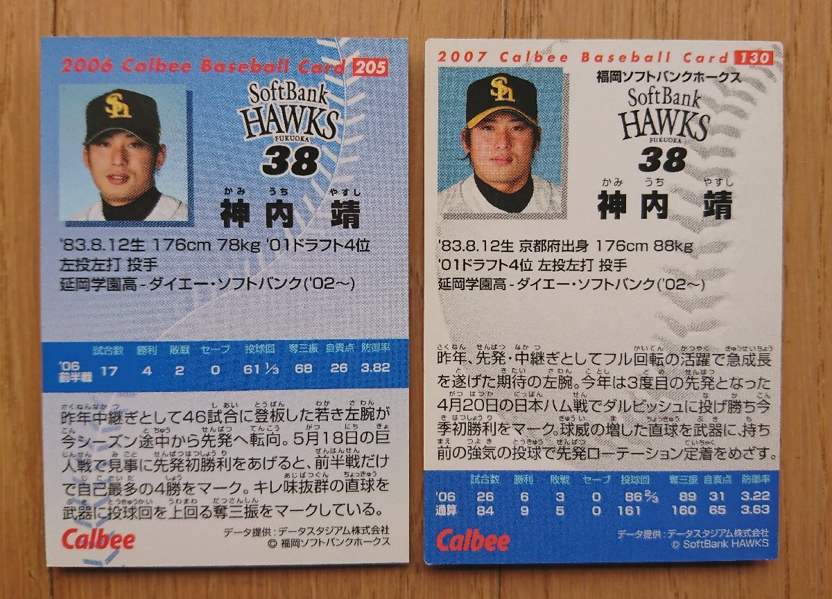 【カード・カルビー】神内靖 2006年205 / 2007年130 計2枚セット 福岡ソフトバンクホークス カルビープロ野球チップス