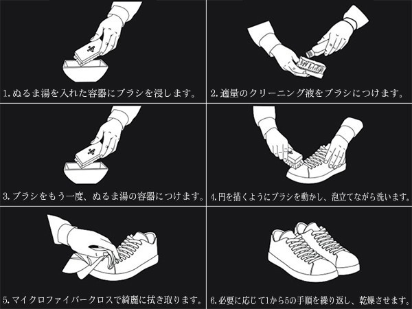 ※スエードやヌバックを洗浄する際の注意としては、 ブラッシング前にできる限りブラシの水気を落としてから上記の3の手順から始めて下さい。