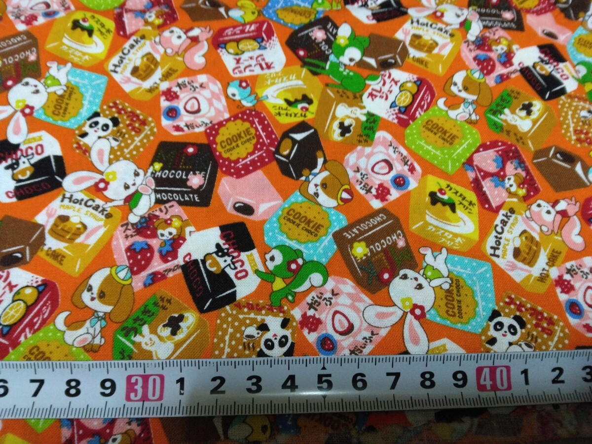 はいから横町シリーズのレトロアニマルとチロルチョコ柄のシーチング生地です。