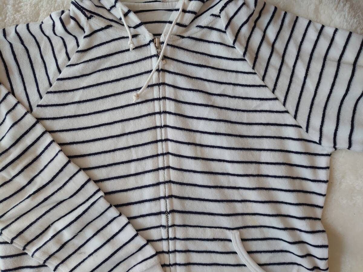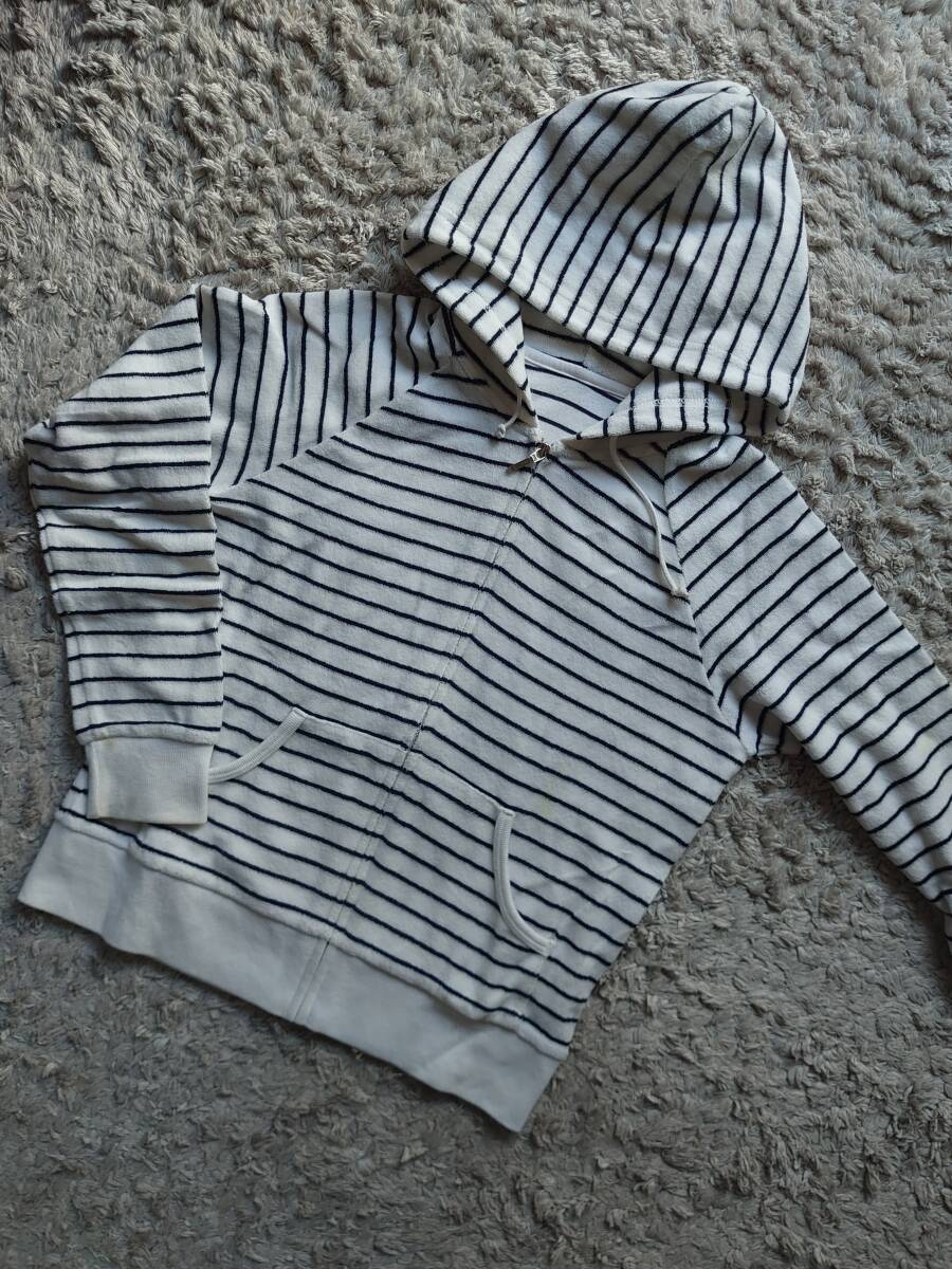 ★ユニクロ*UNIQLO*パイル素材パーカー**Sサイズ*フードパーカー*ライトグレーとストライプ*2枚セットまとめ売り*パイル素材が肌触り良いです。ストライプの方右側袖口にうっすら染みがあります。