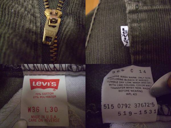 美品★70s 70年代 80s 80年代★リーバイス LEVI’S 519 コーデュロイ★ヴィンテージ vintage★アメリカ製 USA★グリーン 緑★古着 アメカジ