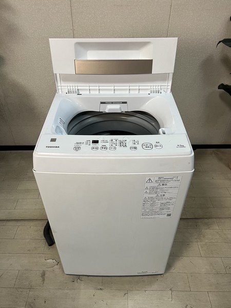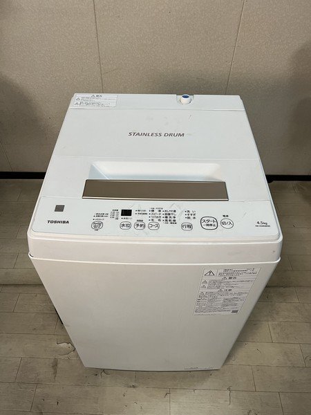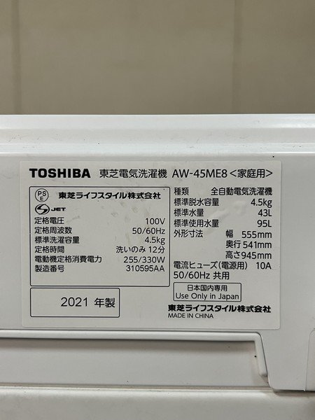 §【 東芝 / TOSHIBA 全自動電気洗濯機 AW-45ME8 ホワイト 4.5kg 22年購入 パワフル洗浄 ステンレス槽 】Q02232