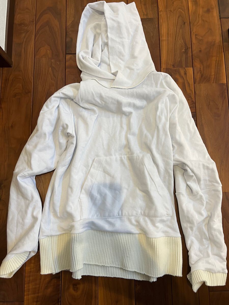 上記の通りアルチザンテイストのある作品が魅力ですが中々着づらいアイテムも多い中、当該はヴィンテージスウェットを切り貼りして作られたパーカーで着やすい&それでもかなり雰囲気のあるパーカーです。サイズ感も大きいのでだらっときてもらえると非常に雰囲気があります。定価も高いブランドですのでぜひ