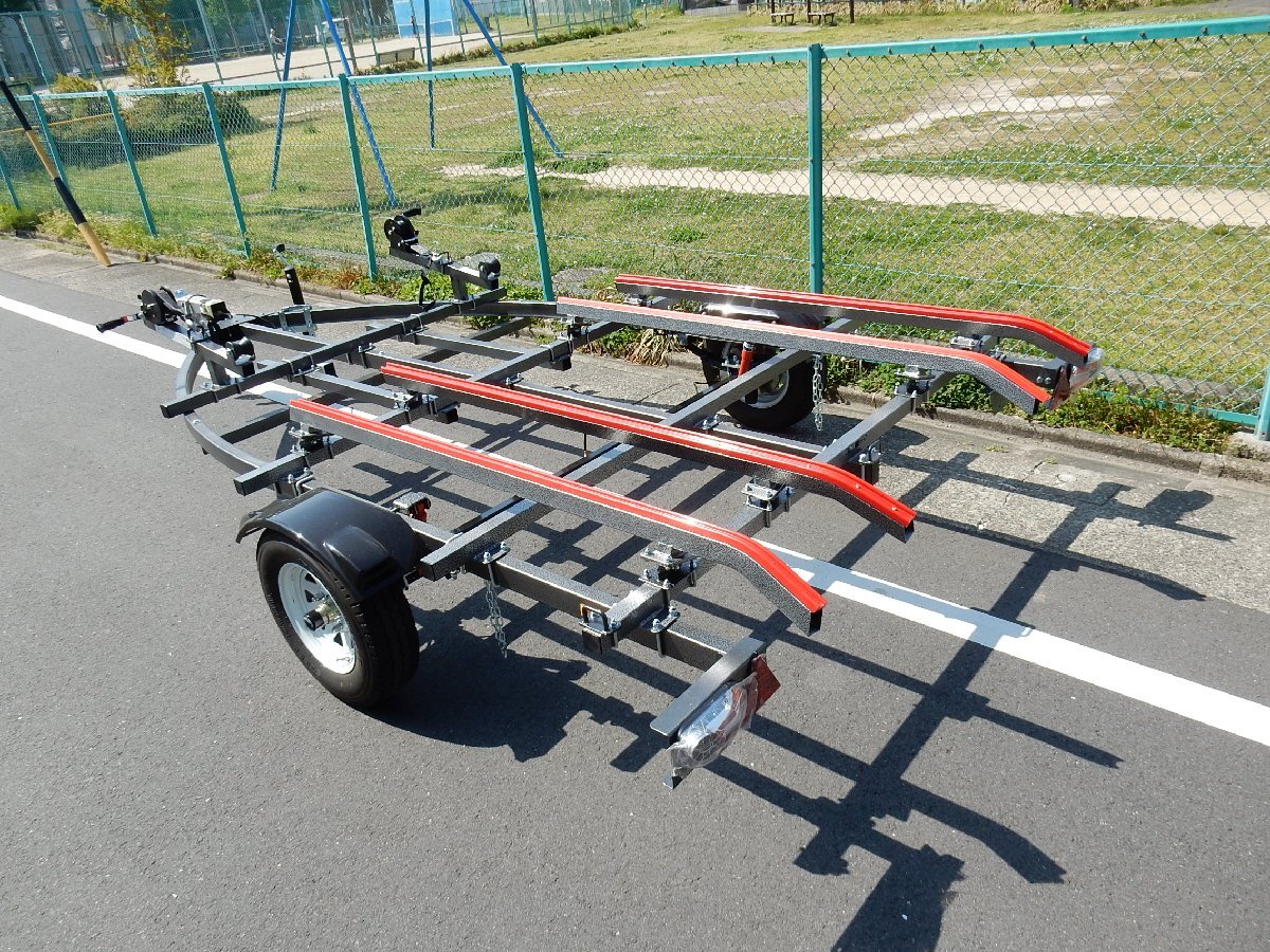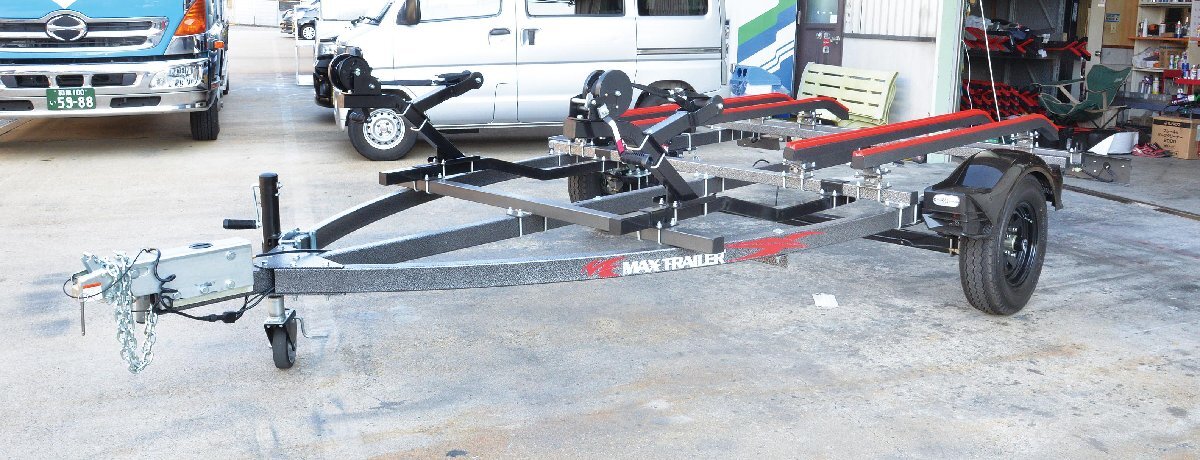 | MAX TRAILER ■□■□■□■□■□■□■□■□■□■□■□■□■ モンスター スチールボディ 2艇積 〈普通ナンバー登録車〉 ○ 全長455cm×全幅247cm×全高95cm ○ 重量350kg/最大積載量1.000kg 〇 タイヤサイズ:175-R13 8PR 4.5J ET±0 ■□■□■□■□■□■□■□■□■□■□■□■□■ ○ 油圧慣性ブレーキで急ブレーキでも安心! ○ タイトジャパン製マックストレーラー ★連結検討書(950登録用・並行輸入車は不可)を無料で作成します★ ○ ランナバウト2艇積み ○ 標準装備 マグナムアブソーバー/マルチタンデムVタワー/スチールフラットレール/ストッパートレーラージャッキ/LEDサイドマーカー/4枚式リーフスプリング/インクルードライセンス ○ 新品未使用です。 ○ 予備検査、連結検討書付きです。 ○ 牽引免許必要!! 業販ご希望の方は、メールで御連絡下さい。 funs8638@gmail.com | |