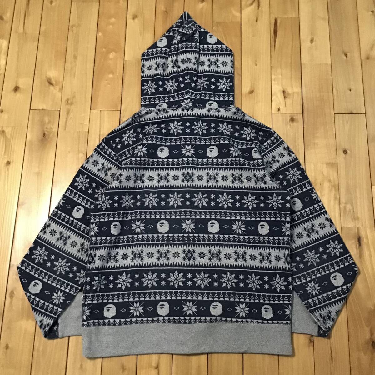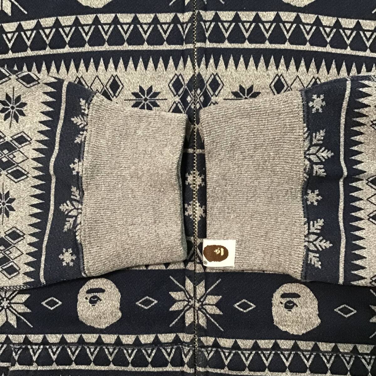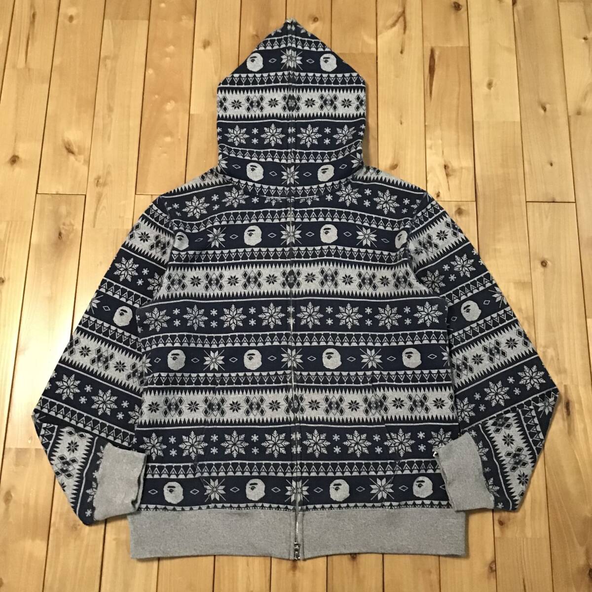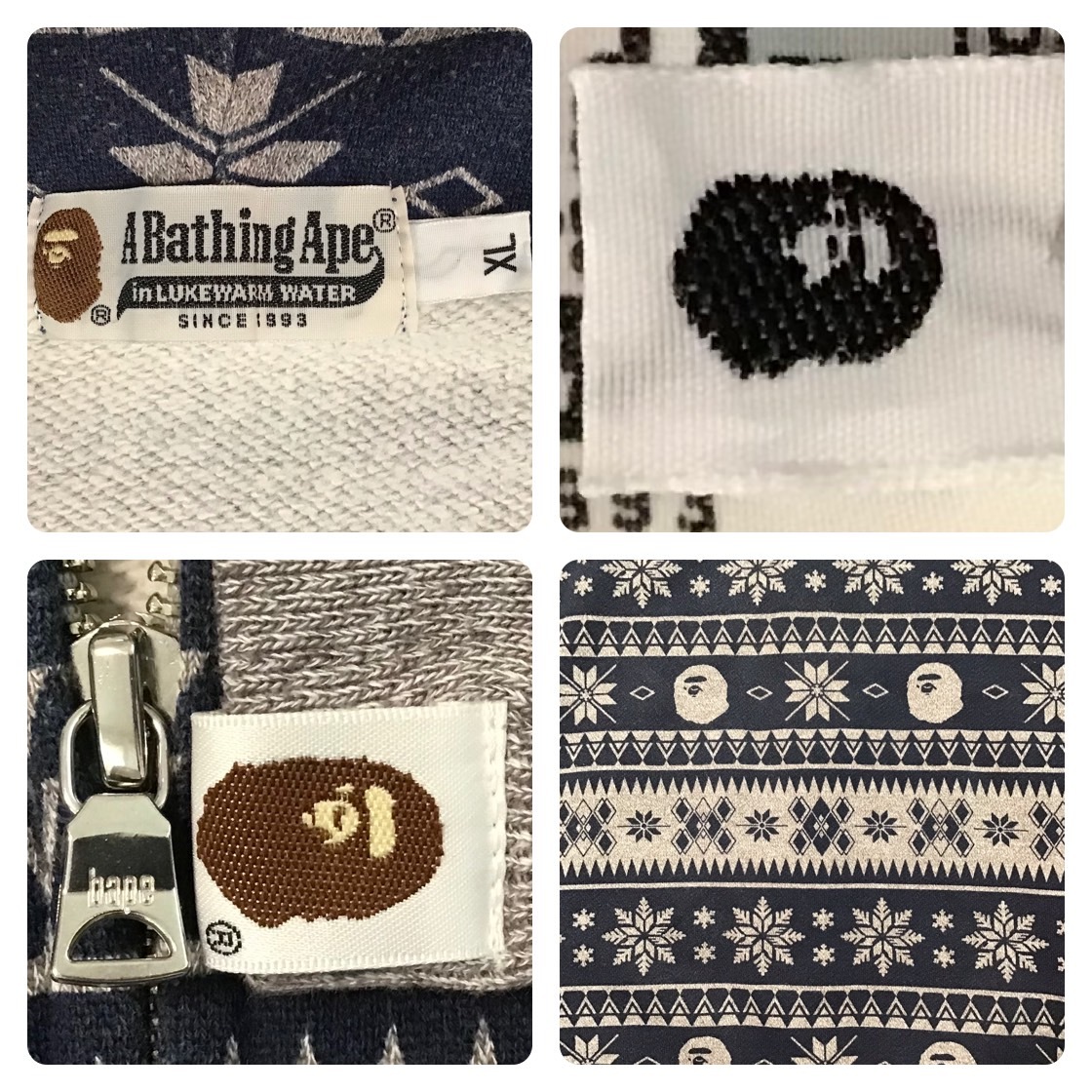 a bathing ape ノルディック柄 フルジップパーカー グレー × ネイビー XLサイズ です★