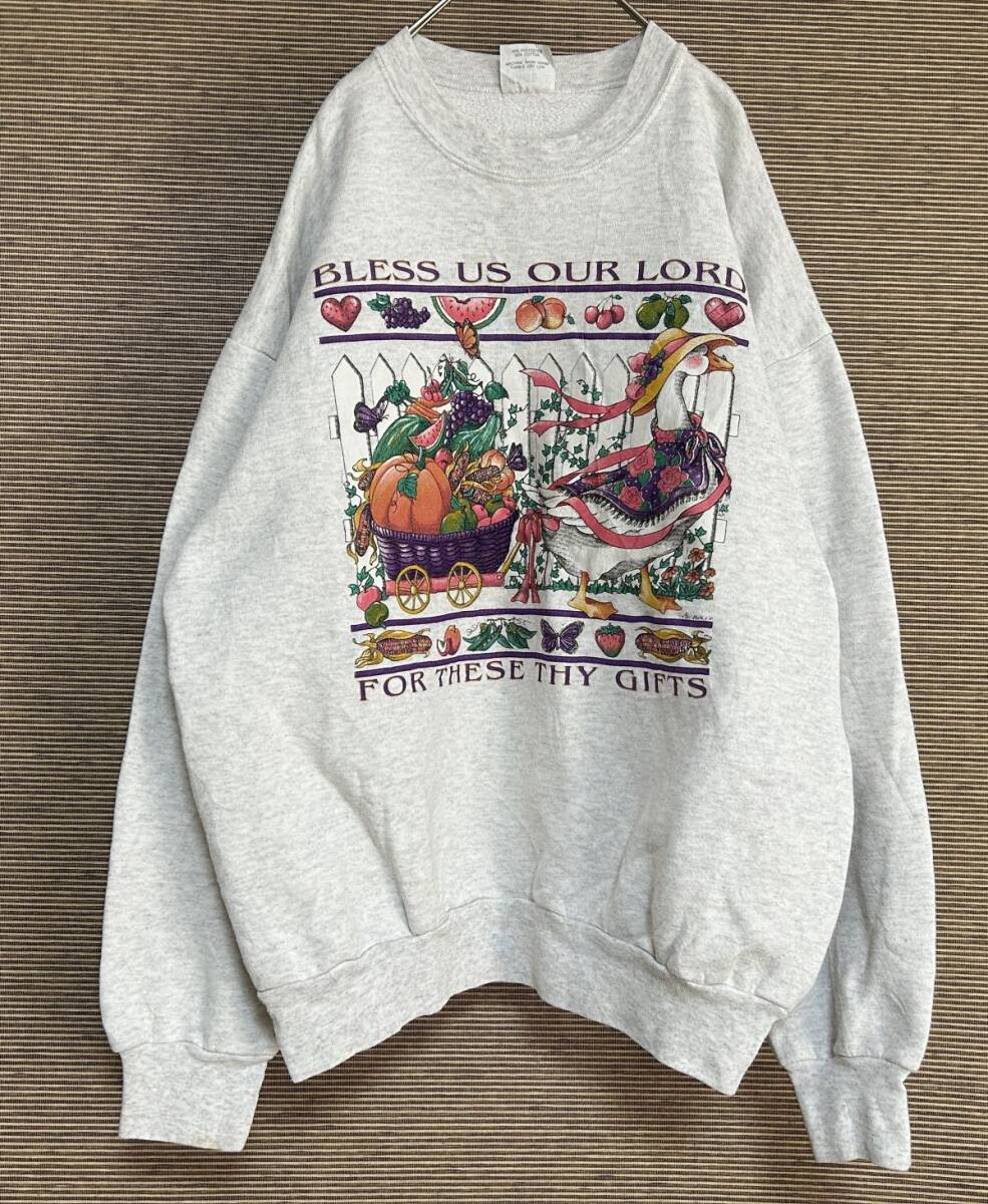 【USA製】90sスウェット フルーツ果物 アニマル アヒル グレー太アームF6 | |