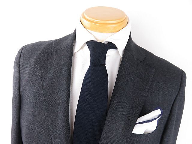 (ジャケット:総裏地、センターベンツ、フラップポケット)(パンツ:1タック、シングル裾、裾折り返し約8㎝)