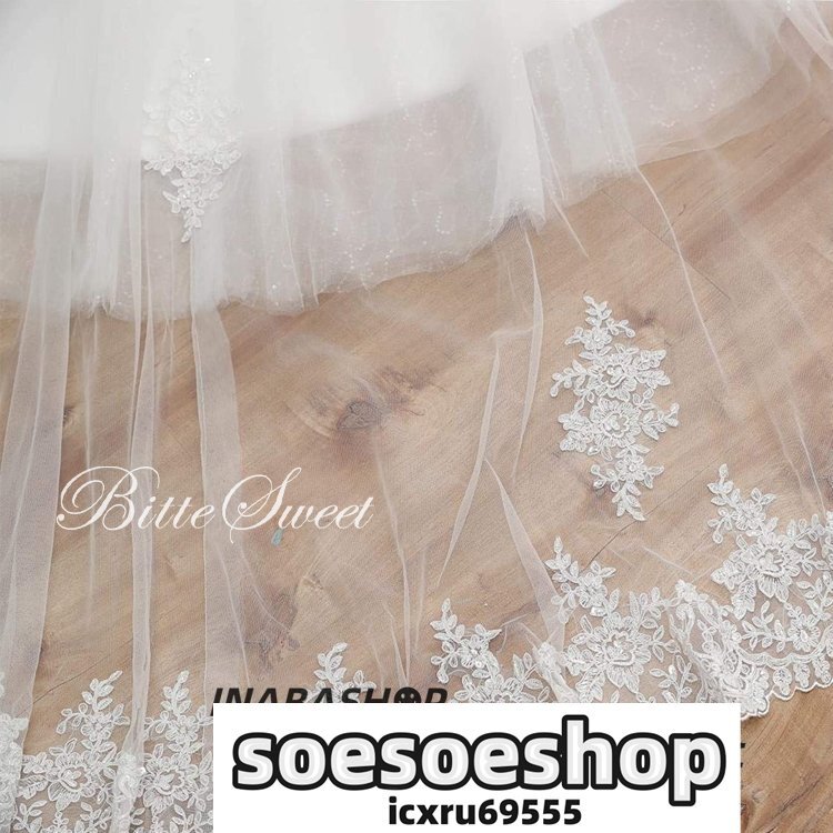 ウェディングドレス ウェディング ウエディングドレス 花嫁ドレス 白 Aライン ロング チュール 刺しゅう レース 結婚式 海外挙式 ホワイト