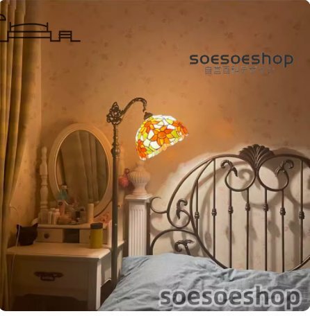 品質保証★極上品◆ 花柄ステンドランプ ステンドグラス アンティーク レトロな雰囲気がおしゃれ★ティファニー技法 照明 フロアスタンド