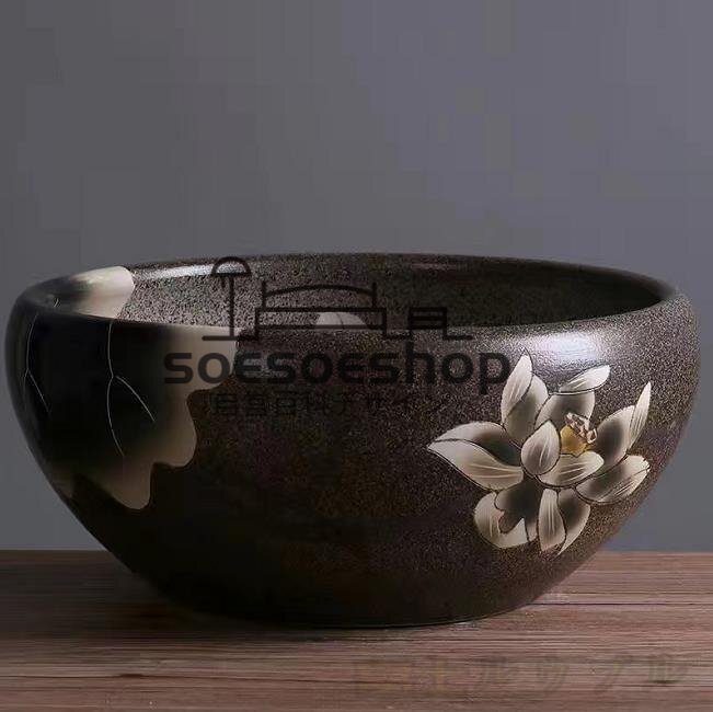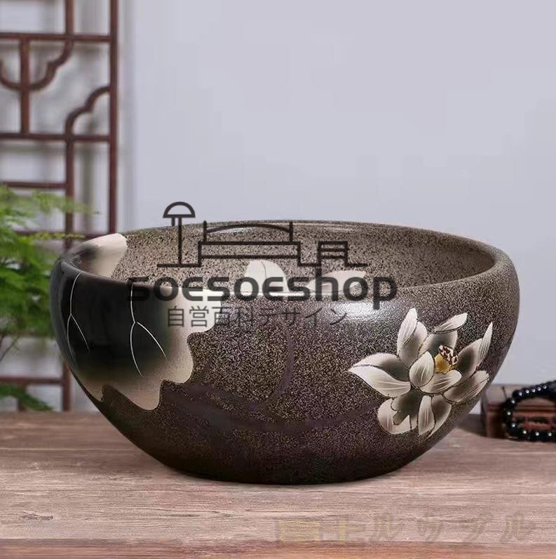 新品 睡蓮鉢 綺麗な陶器製、メダカ、金魚、水性植物、手描きの逸品