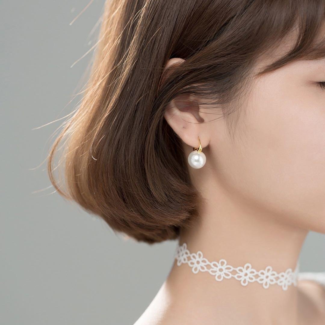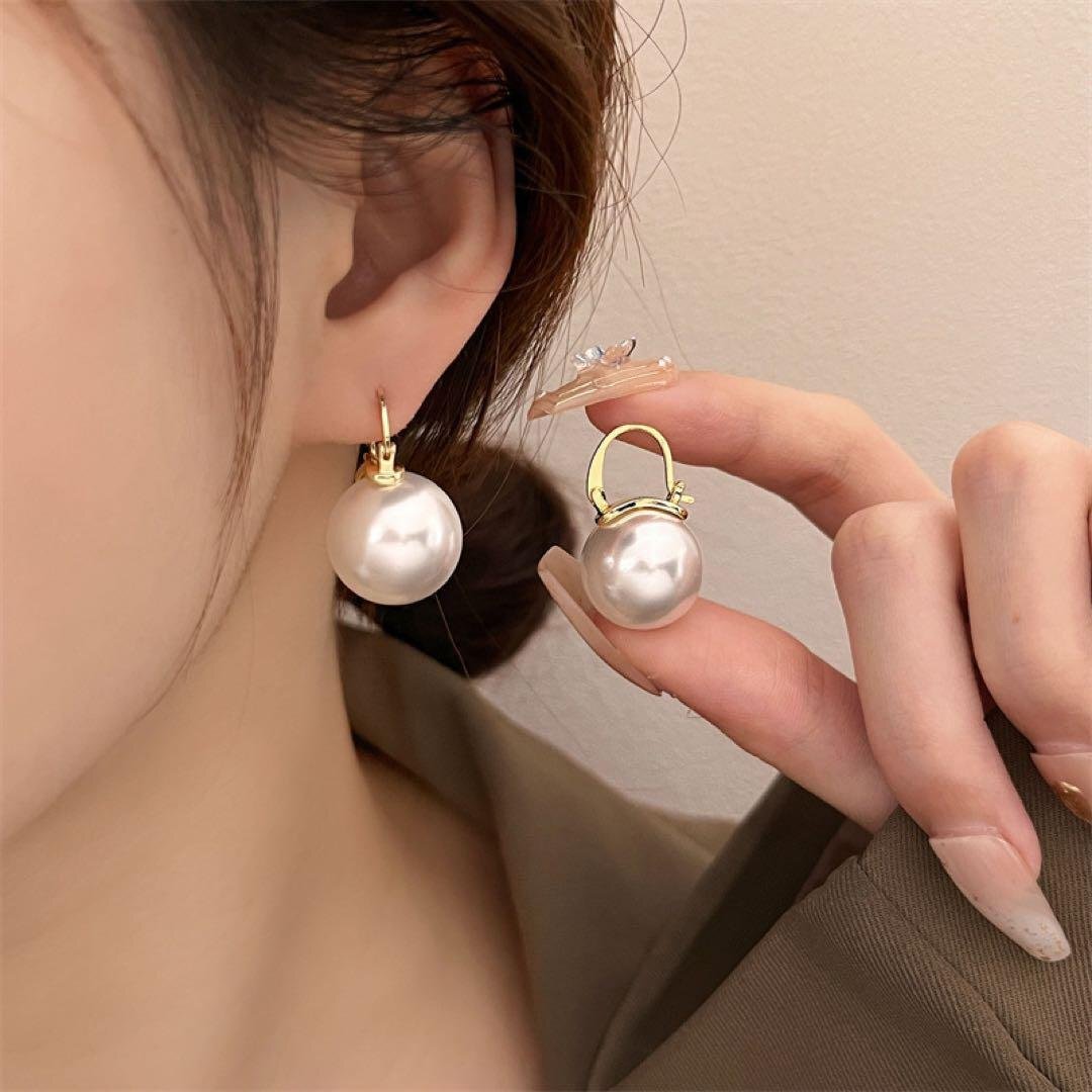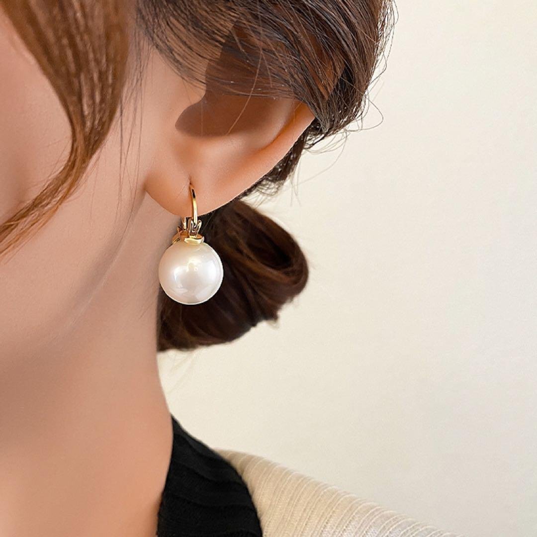 大きめのパール、存在感抜群!!シンプルでおしゃれなデザイン,カジュアルな服装から、フォーマルな服装までさまざまなコーディネートに合わせられます。