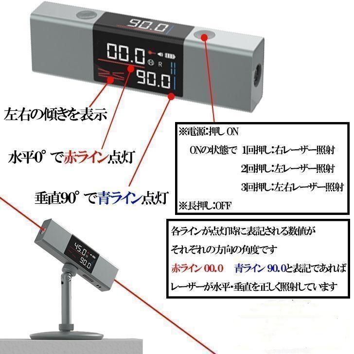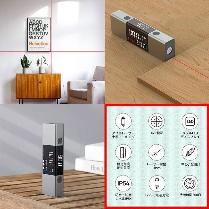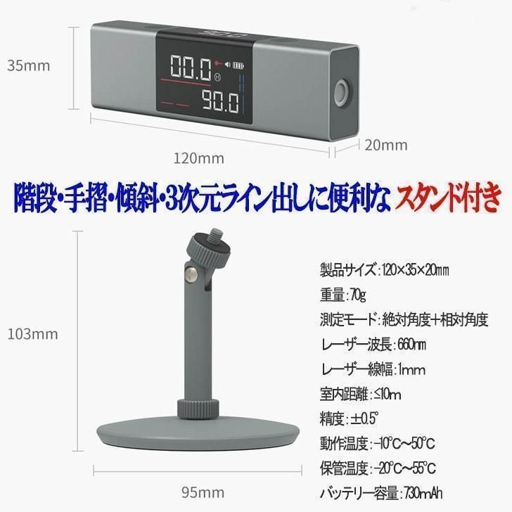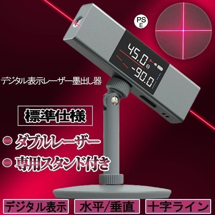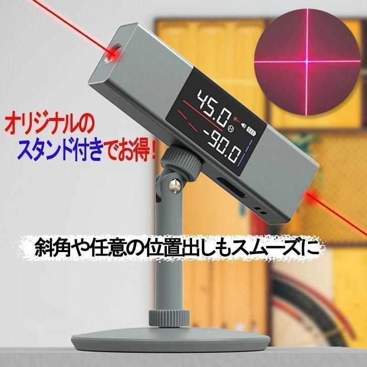 墨出し器 水平器 小型 デジタル スタンド付き 360°角度 十字マーキング クロスラインレベラー 傾斜 角度計 水平 垂直 墨出し 地墨ライン