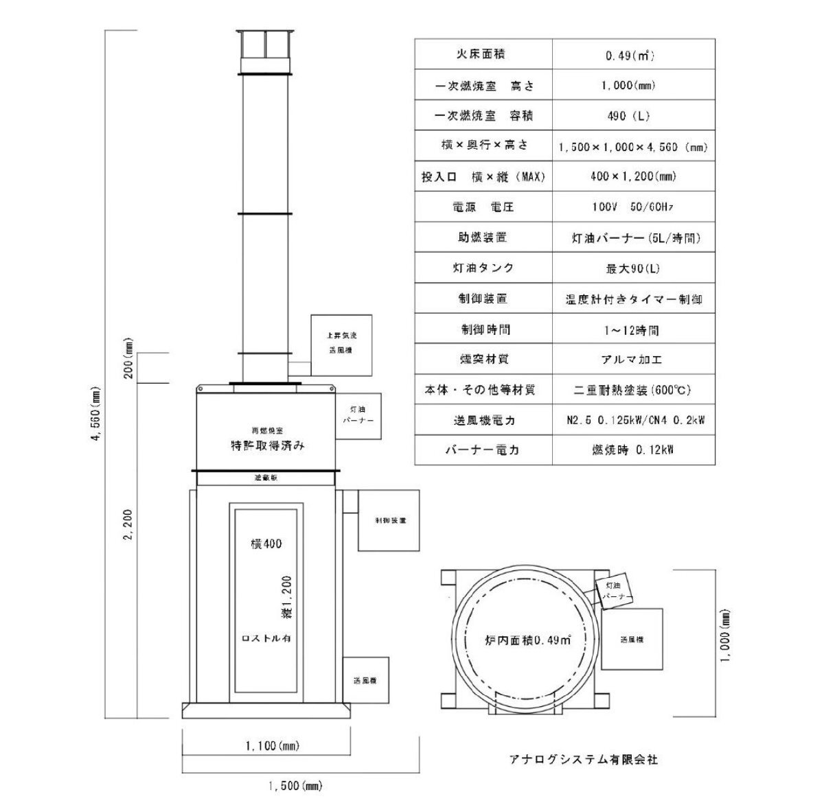 焼却炉 試作機 600B