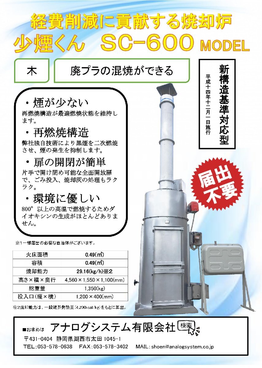 焼却炉 試作機 600B 【新品未使用】【届出不要】【一年間保証あり】