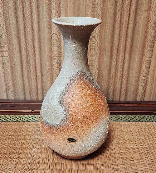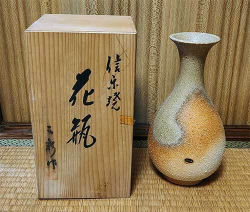 花瓶 信楽焼 三彩作 高さ約25.5cm 陶器 セラミック 花器 花 フラワーベース 昭和 元箱付 未使用