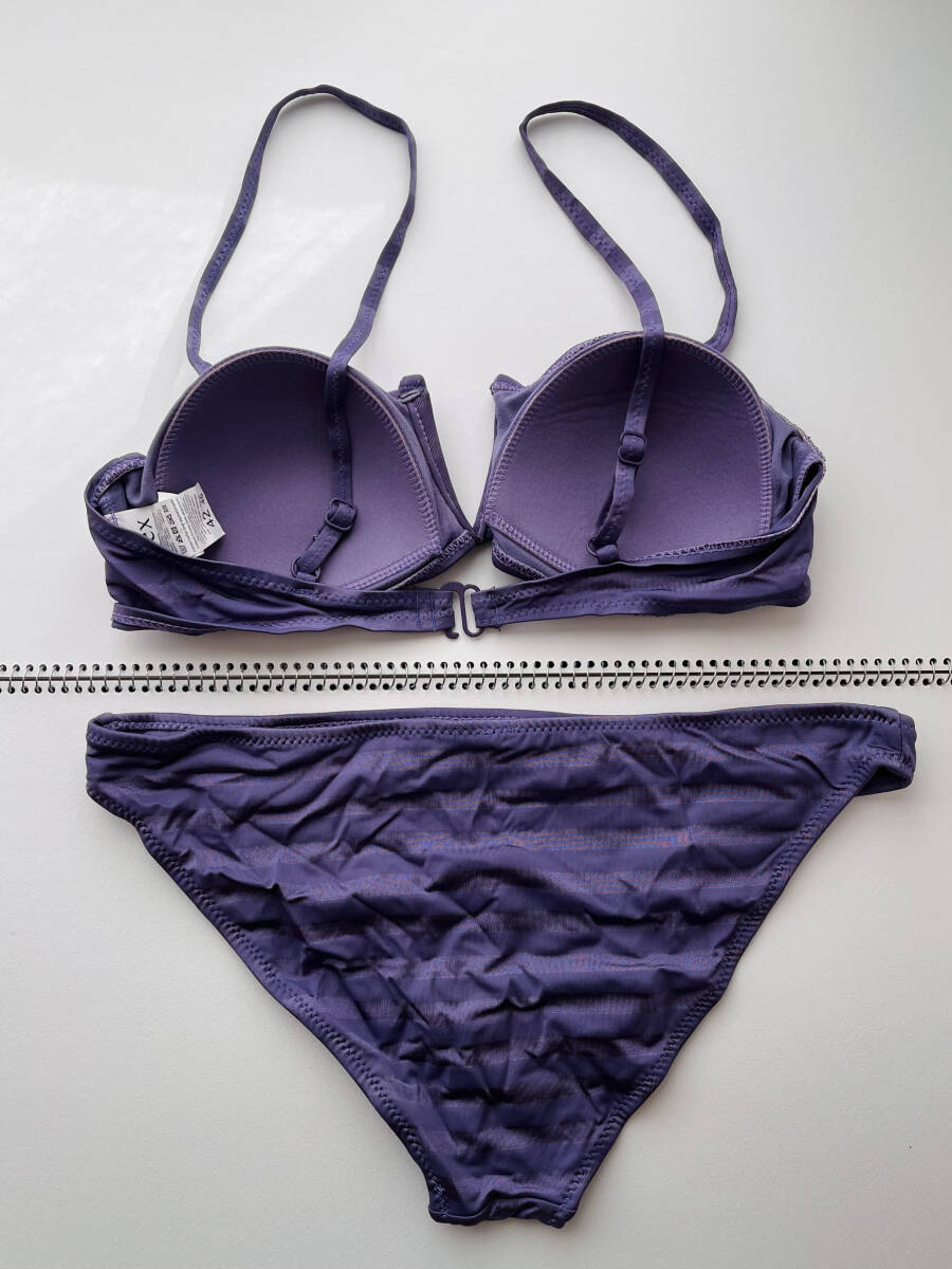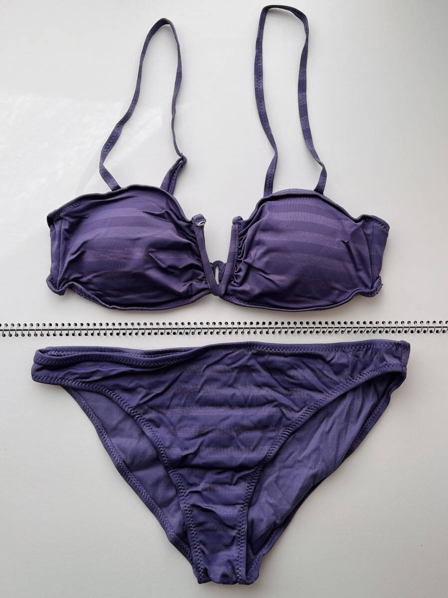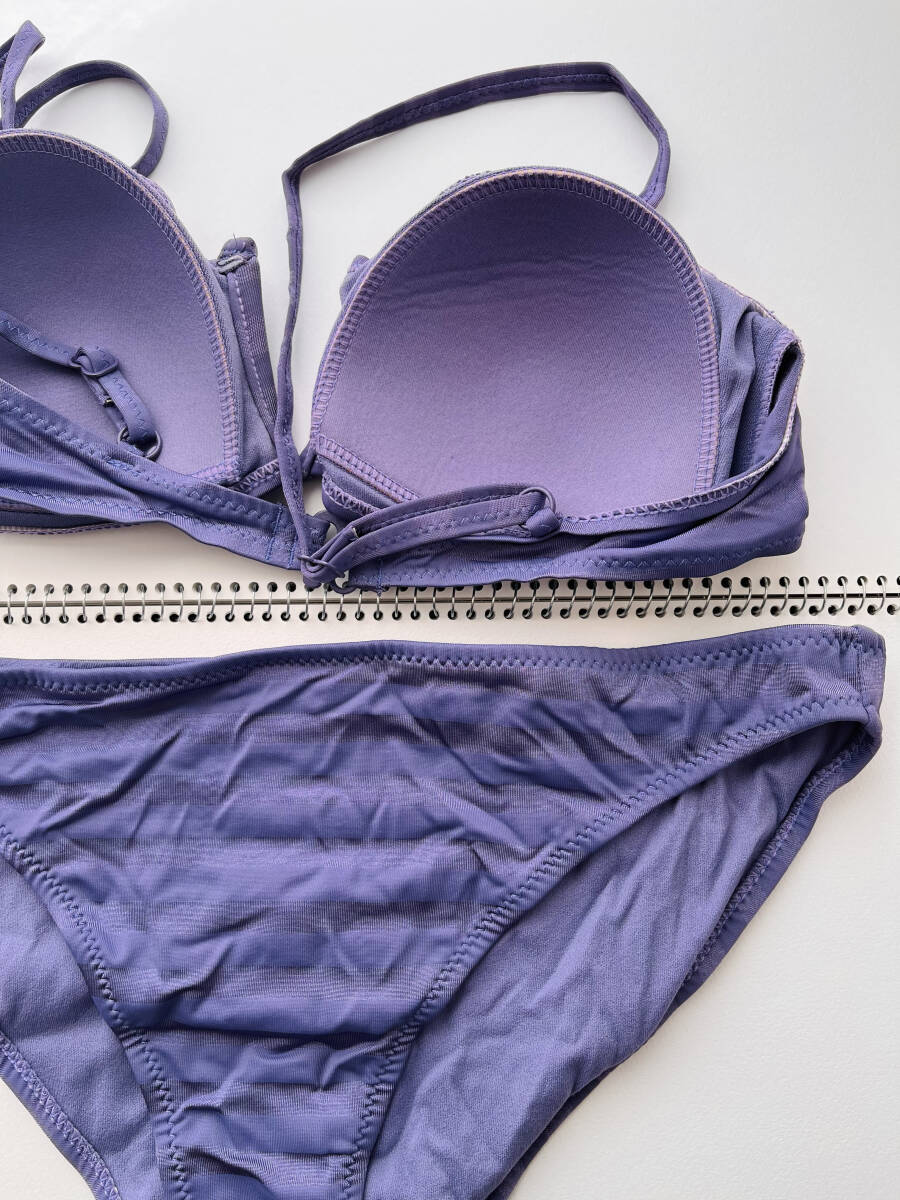 未使用 Lサイズレディース 水着 ビキニ 水泳 スイムウエア 上下セット ボーダー 紫パープル ショーツ ボトムプール ビーチ 海 リゾート