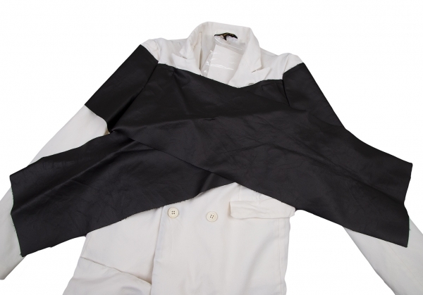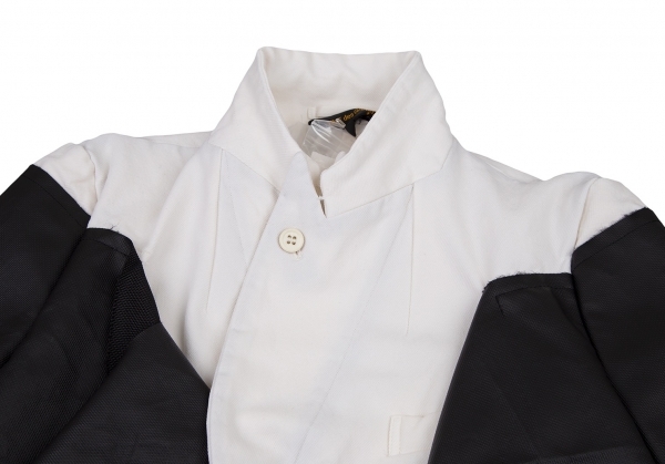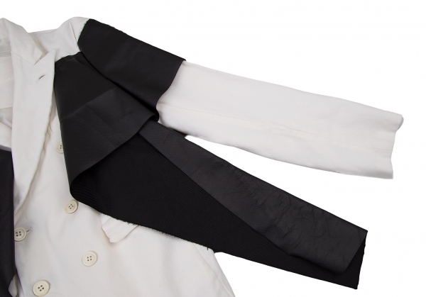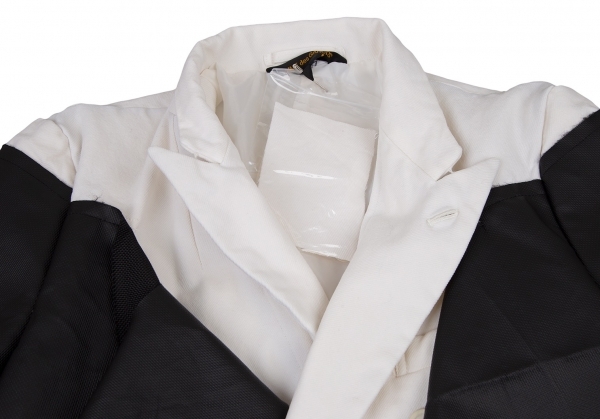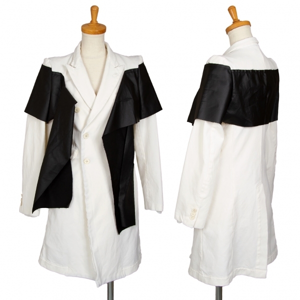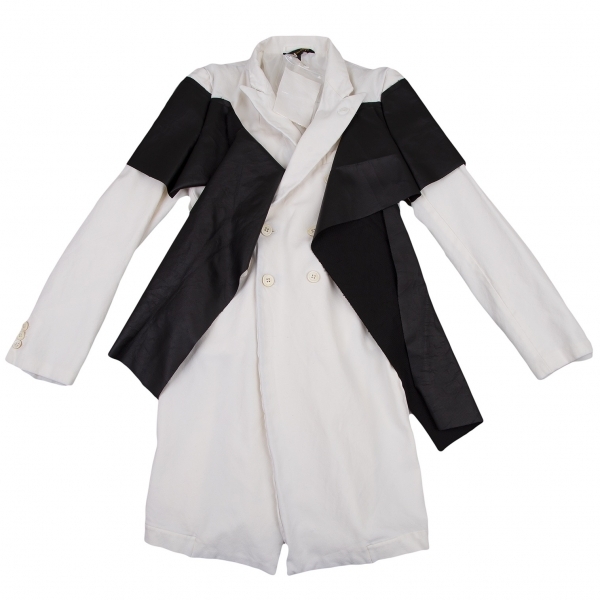 | コムデギャルソンCOMME des GARCONS エステル染色加工異素材貼り付けロングジャケット 白黒S |