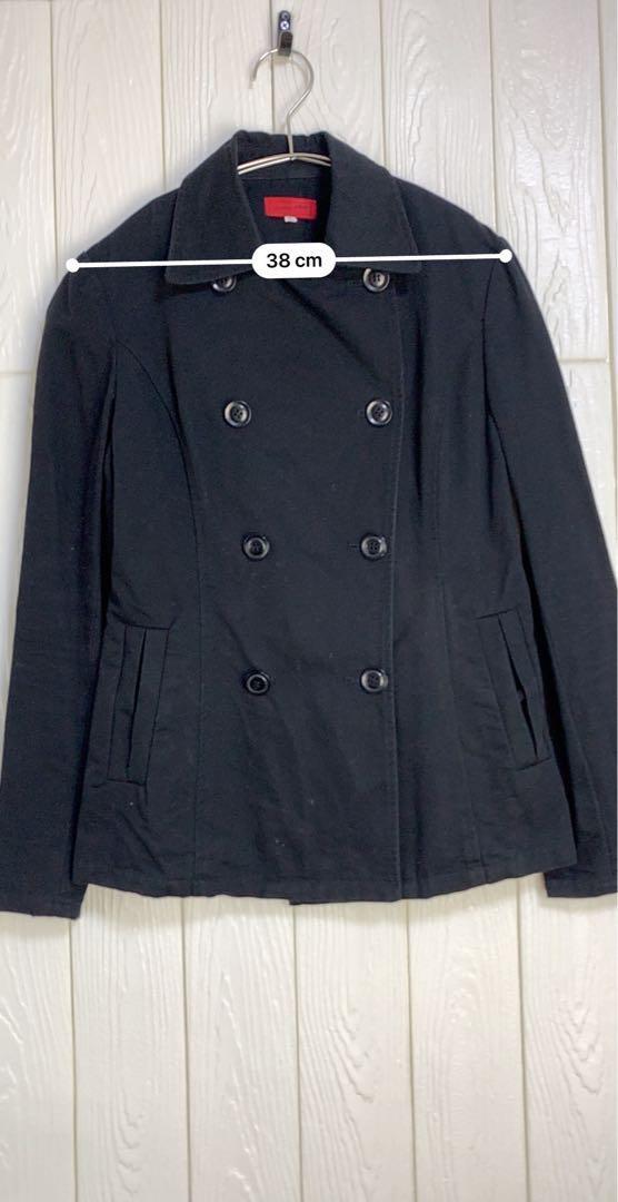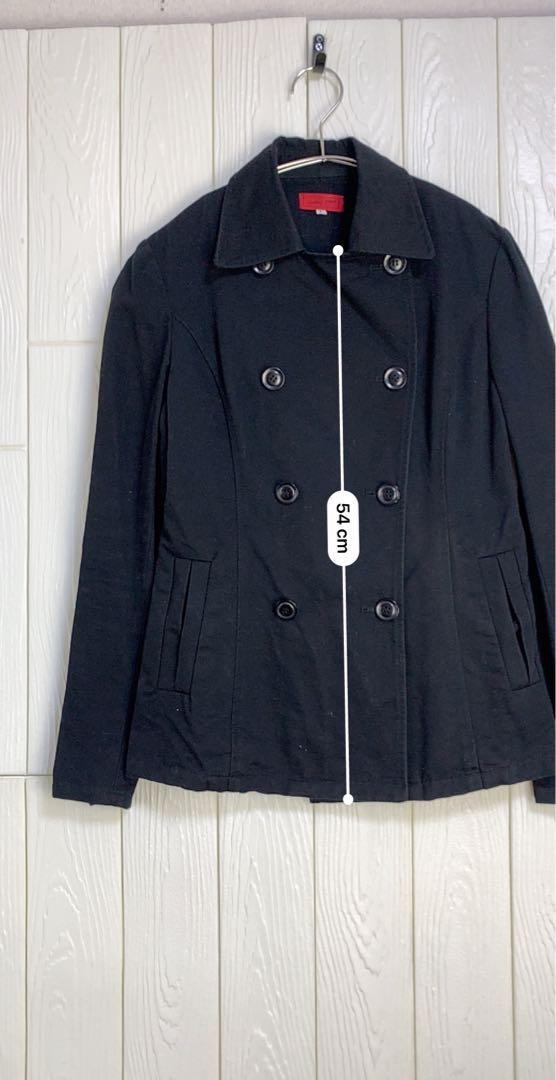 シンプルでスタイリッシュな黒のテーラードジャケット、肩幅38cm、着丈64cm。