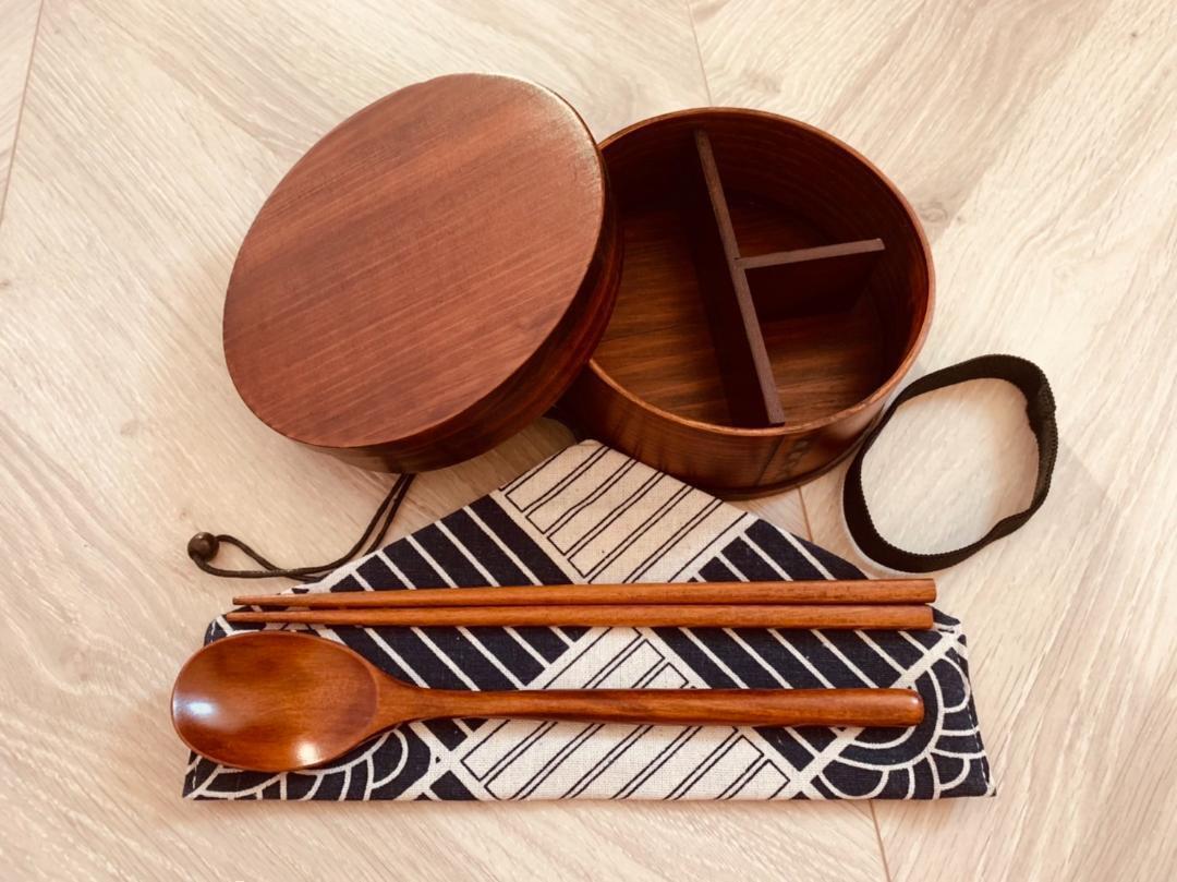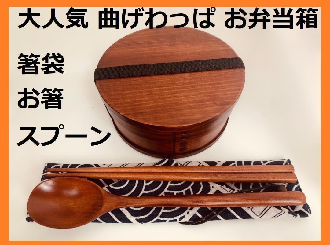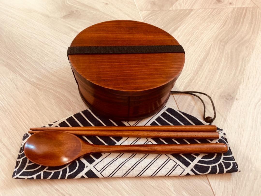 日本の伝統工芸曲げわっぱのお弁当箱に天然木のお箸とスプーンケース付きでSNS映え間違いなし