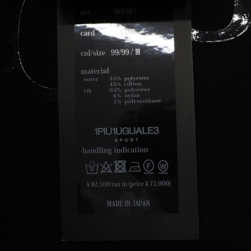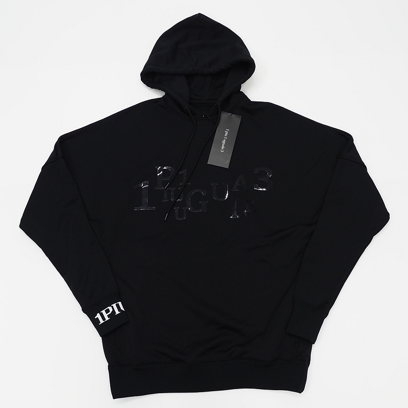 B06803 新品 1PIU1UGUALE3/パーカー 【サイズ:3】 ブラック 定価82500円 ロゴジャカードリブ ウノピゥウノウグァーレトレ メンズ