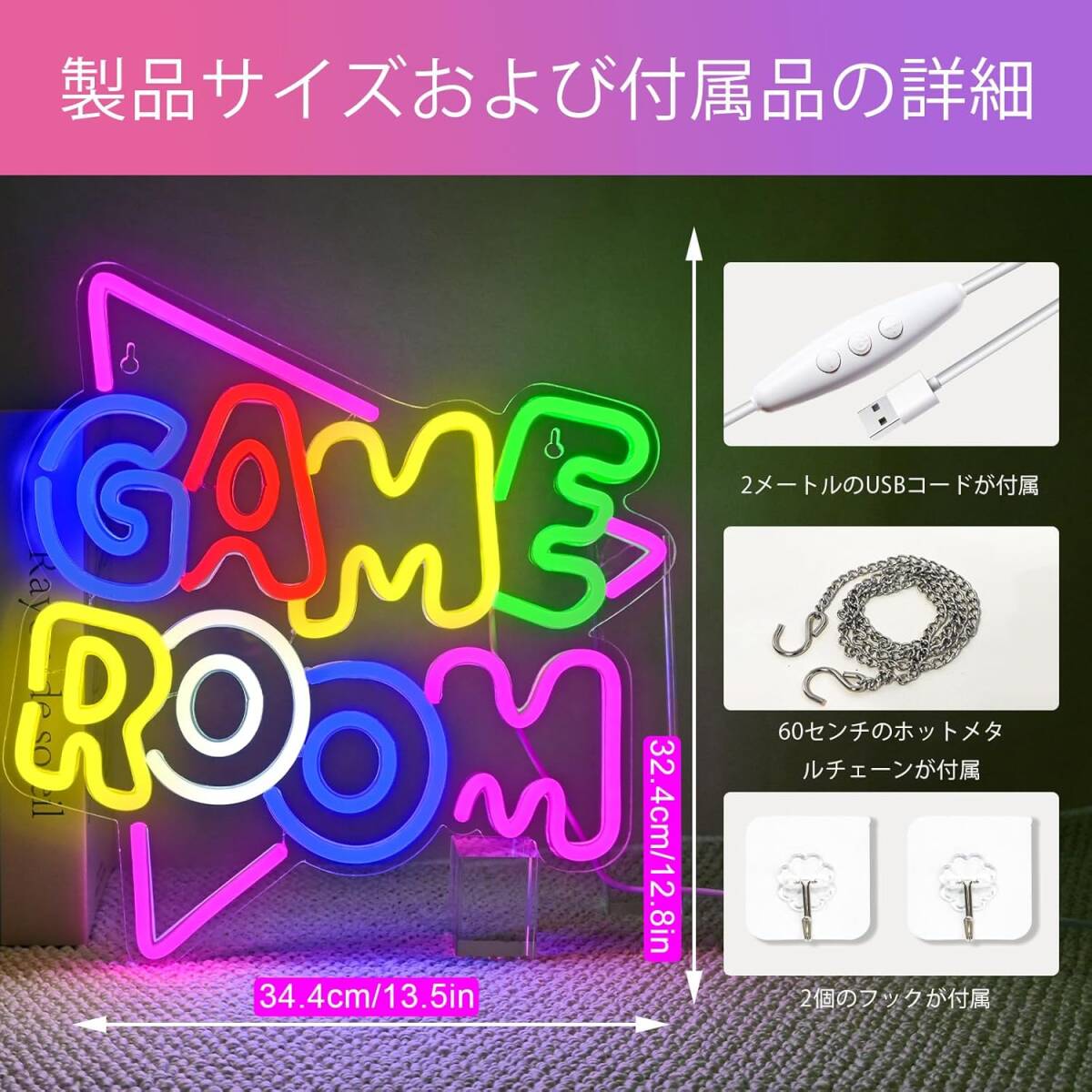 Game room ネオンサイン Ledネオンライト ネオン管風ライト ゲーミング 部屋飾り ゲームルーム ボーイズ ギフト