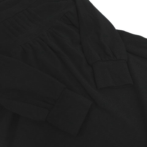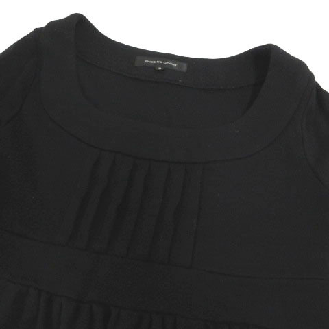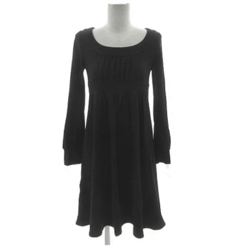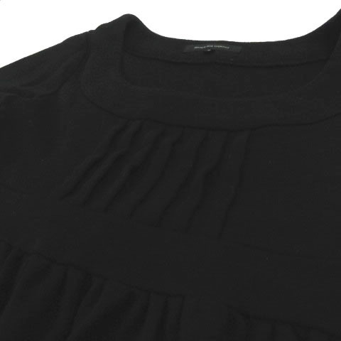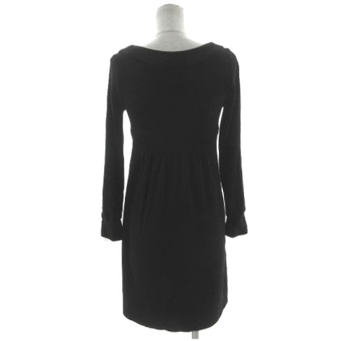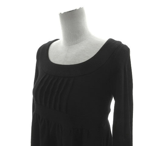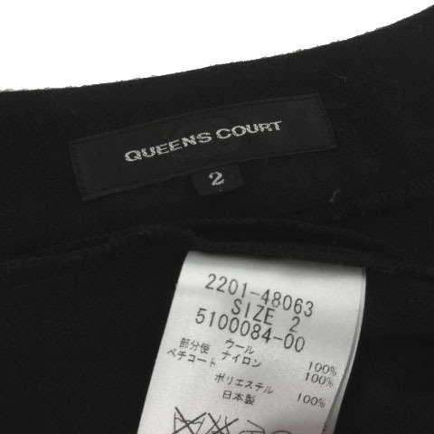 クイーンズコート QUEENS COURT ワンピース ニット ボートネック プリーツ 長袖 ひざ丈 胸下ゴム ギャザー 日本製 ウール 黒 2