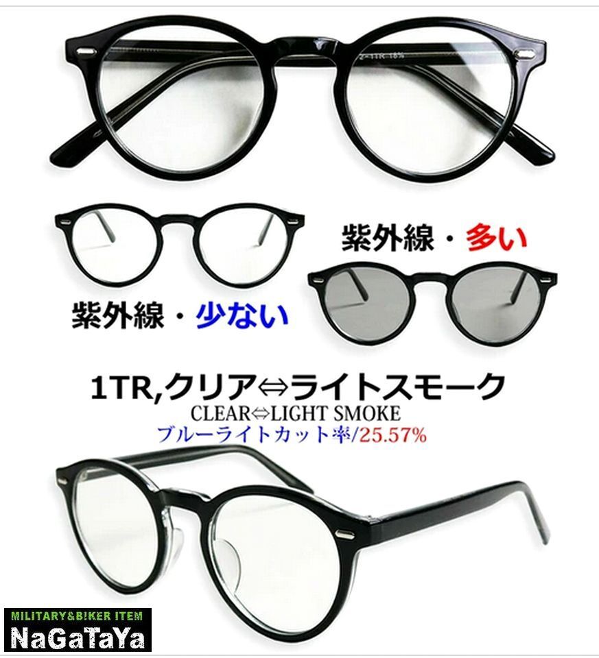 MBN 高機能 レンズの色が変わる調光 サングラス ブルーライトカット クリア 伊達メガネ ボストン UV TY2972 巾着ソフトメガネケース付