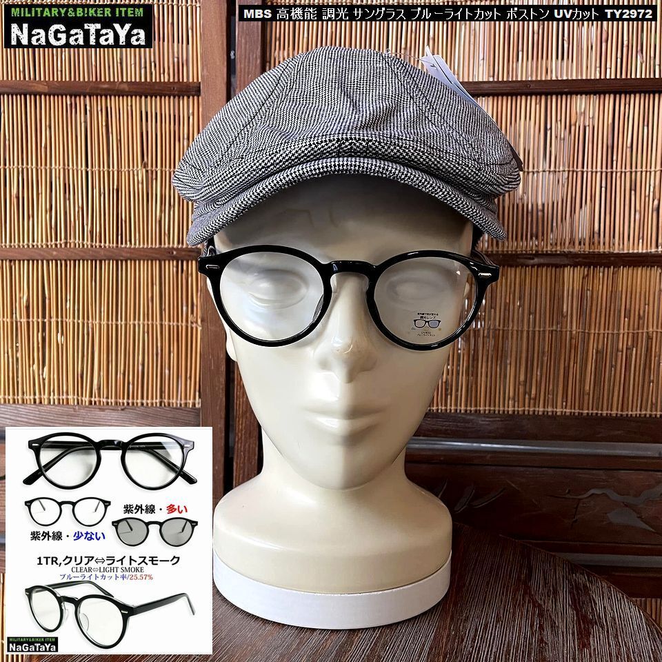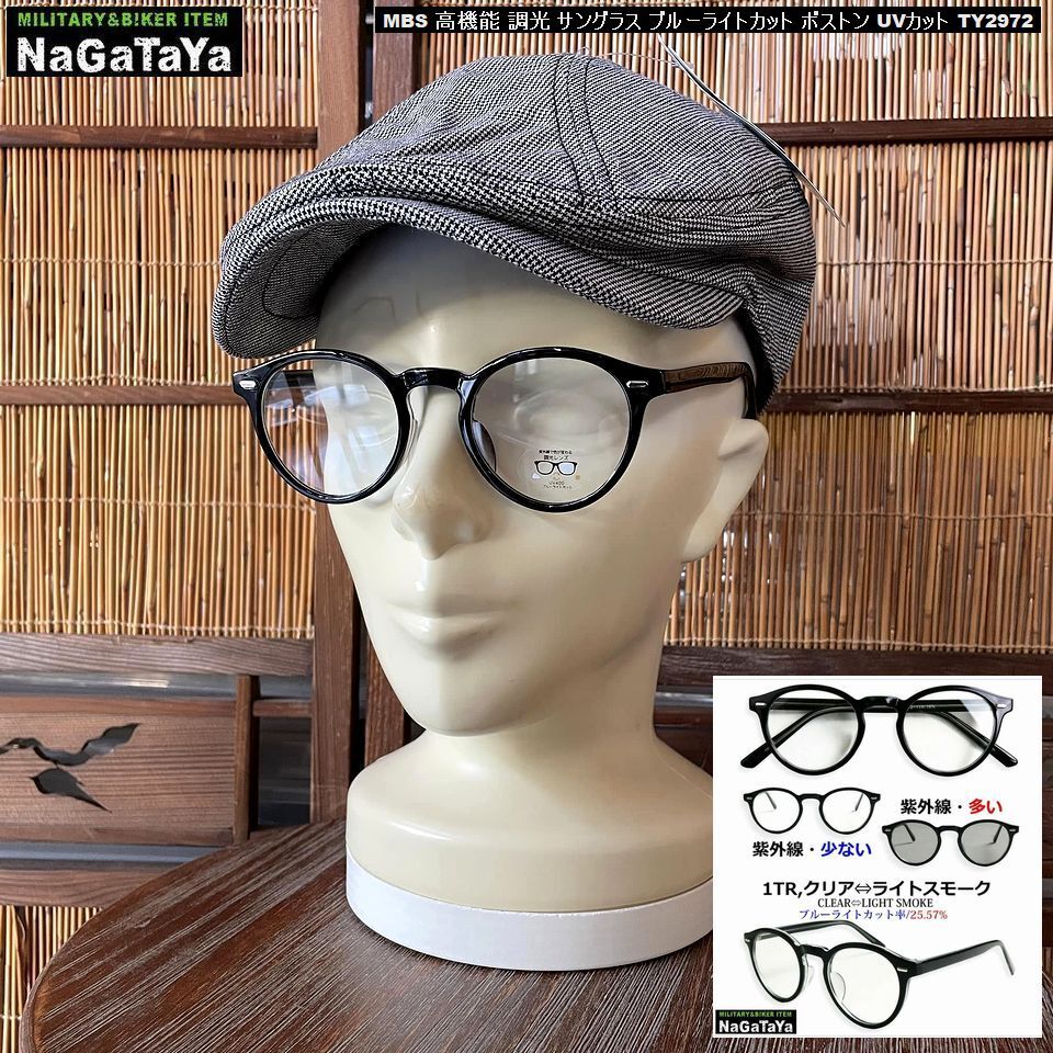★ MBN 高機能 レンズの色が変わる調光 サングラス ブルーライトカット クリア 伊達メガネ ボストン UV TY2972 巾着ソフトメガネケース付
