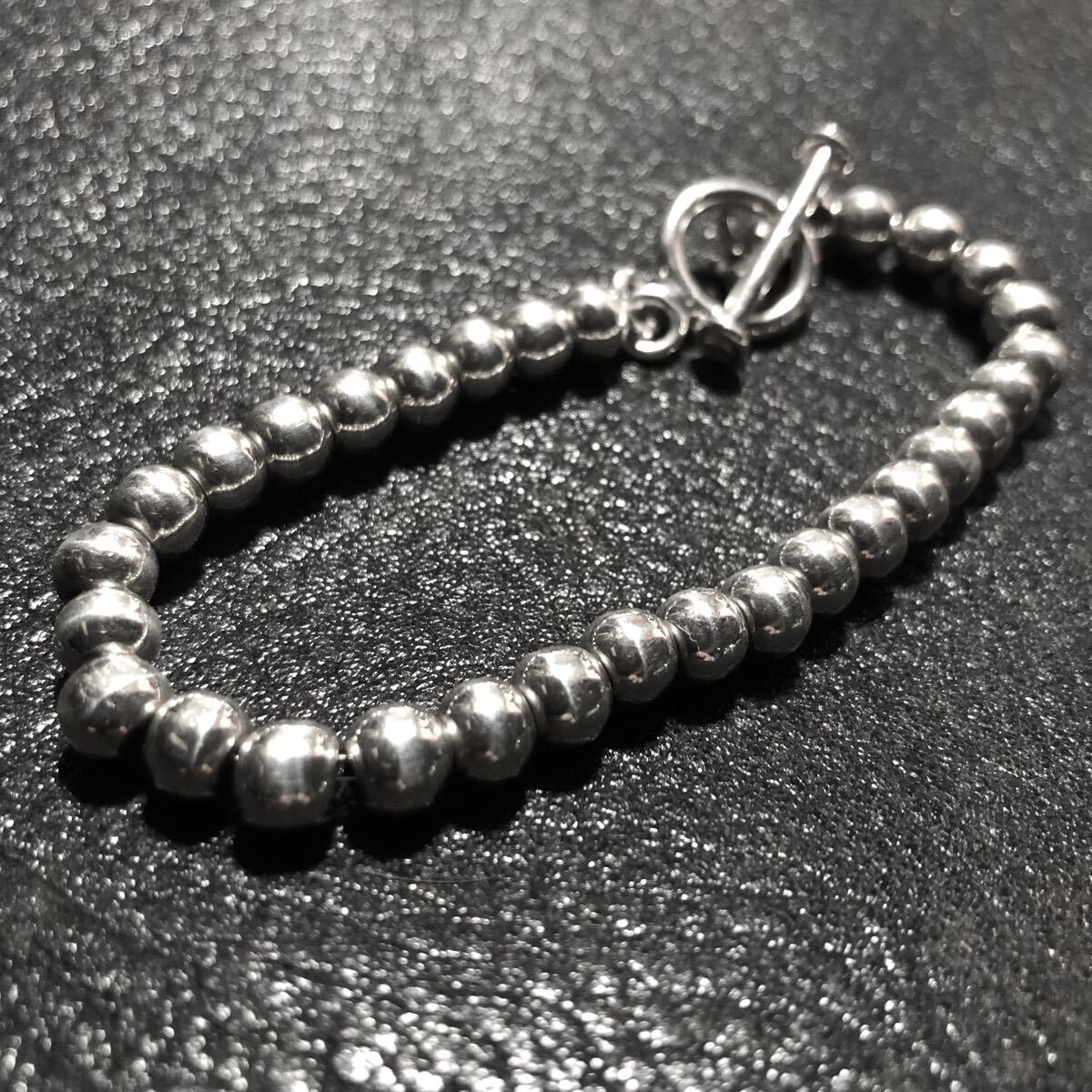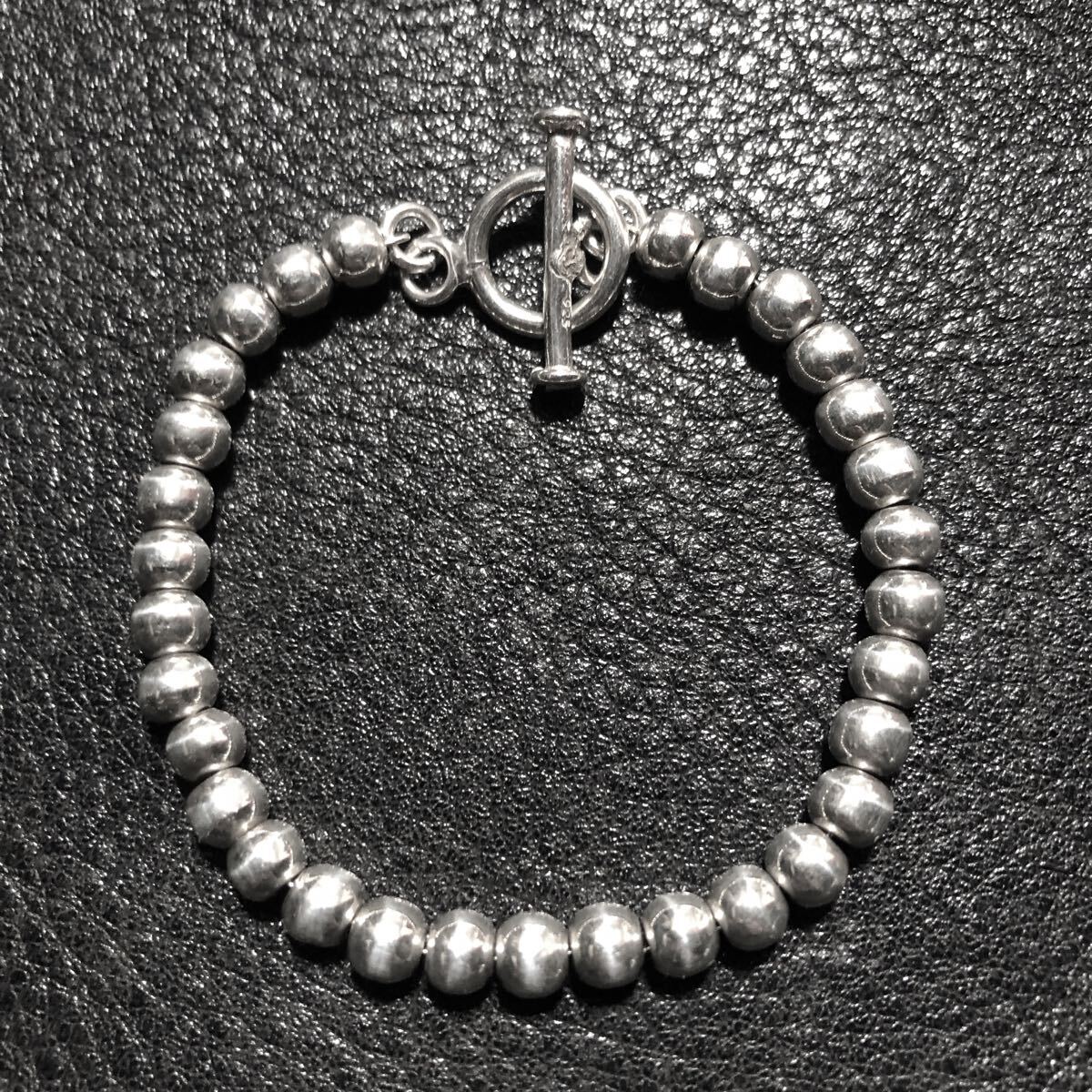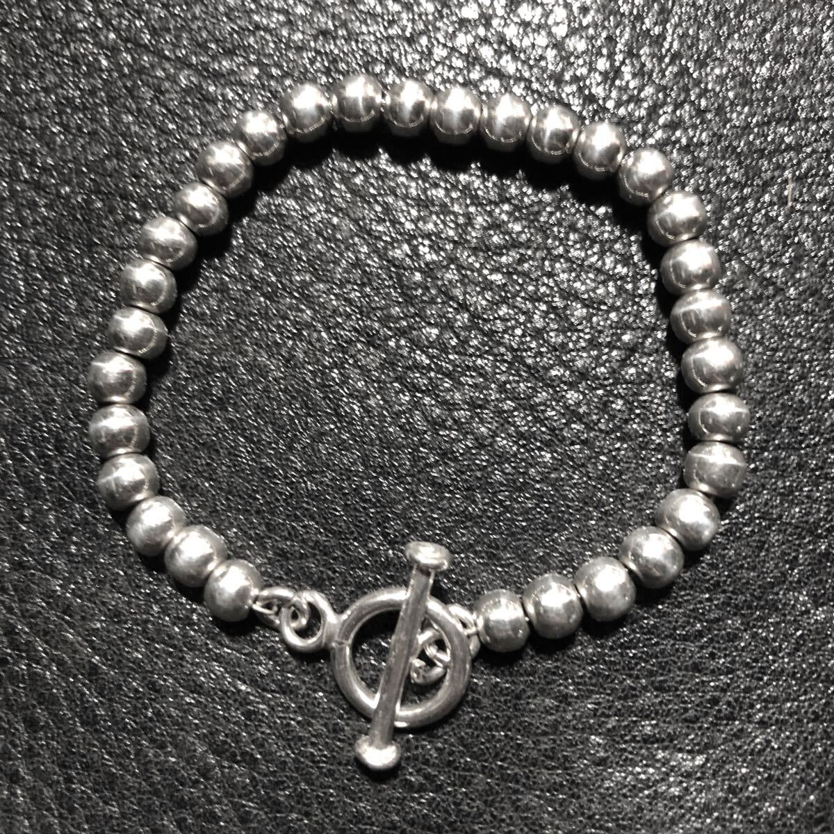 NAVAJOジュエリーでも人気のボールチェーンで、ボール1つ1つもよく見ると面が僅かにフラットに加工されておりとても煌びやかに輝くシルエットです。