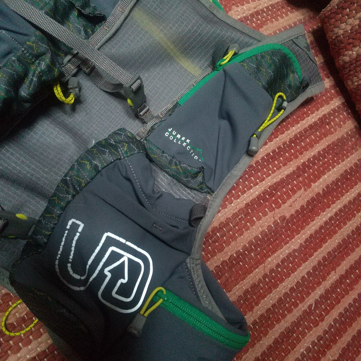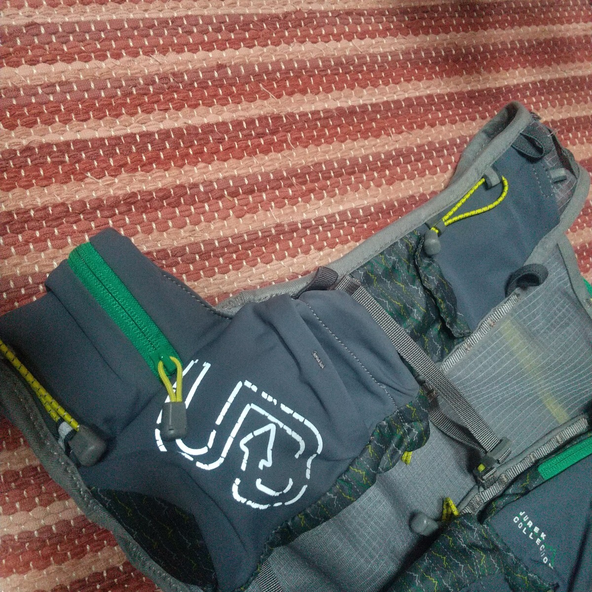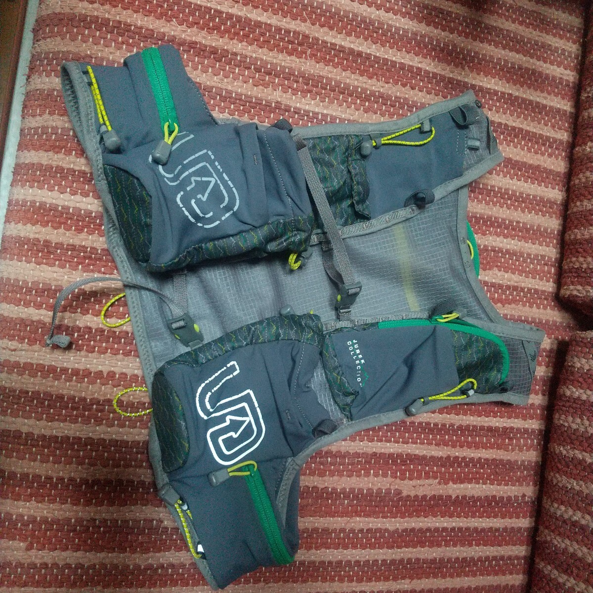 ・特記事項:ショルダーストラップは、耐久レースでの必須装備品を収納し、かつ使用にあたっての考え抜かれた左右非対称デザイン、背面にハイドレーションシステムを内蔵するための専用スペースあり、本体は軽量柔軟素材を使用。本格的な耐久レース、ウルトラマラソンを走破するための必須アイテムです。アップポジションで着用する事が出来、柔軟かつ軽量素材のため、ジャストフィットが可能でした。現在、各部のチャック、ベルト、ストラップ、テンションラバーホルダー等に、破損、ヘタリ等はありません。これから、トレラン競技、トレーニング等でガンガン使用される方向きです。