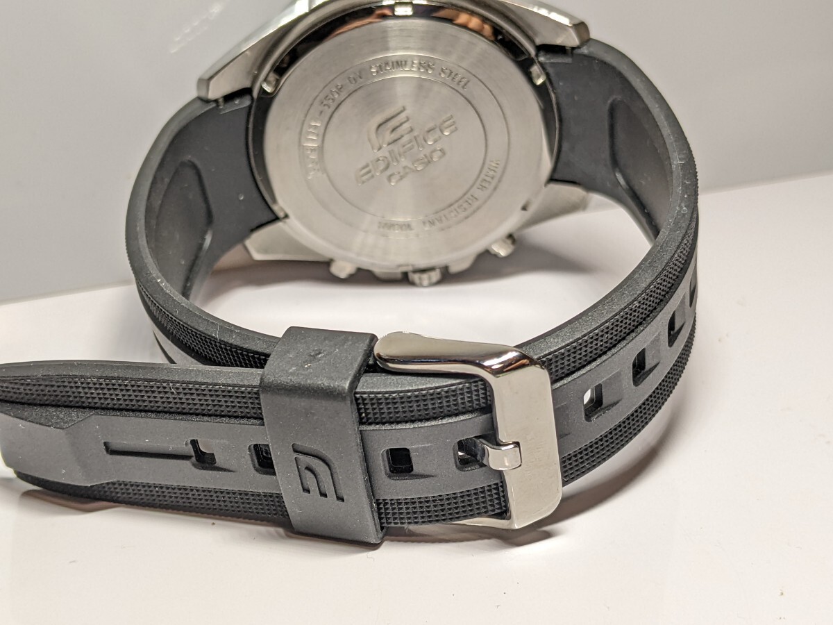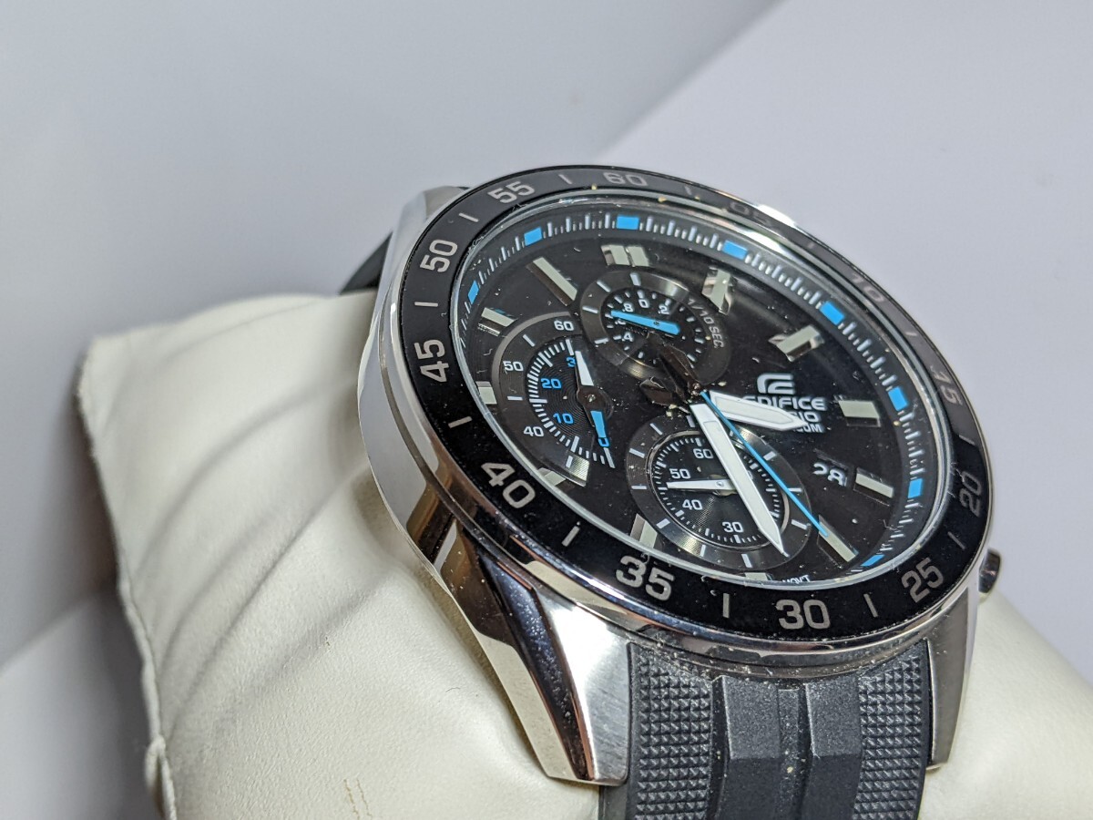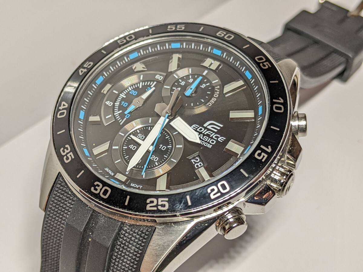 美品 カシオ EDIFICE エディフィス 欧米モデル 精悍ブラック&ブルー 100m防水 クロノグラフ 腕時計 CASIO カシオ 稼動品