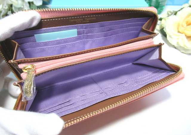 送料無料 45%引 サマンサタバサ 牛革 キラキラ フラワー 飾りベルト付 ラウンドジップ ラウンドファスナー 長財布 ピンク 新品 証明書付