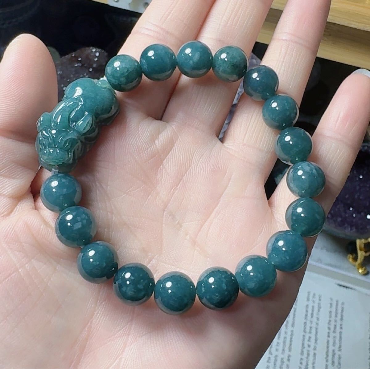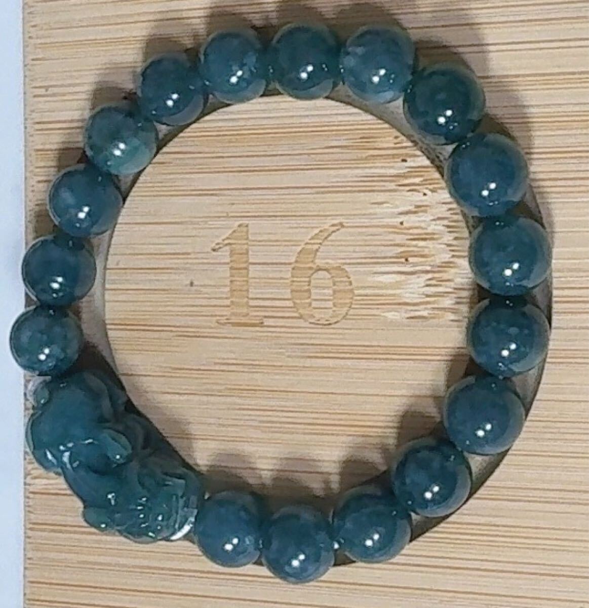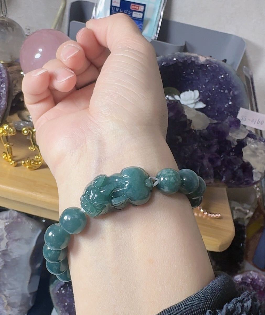 R2-0660天然本翡翠《本物保証》 貔貅ブレスレット16cm 一点物 魔除け 昇進 成功 風水 金運 財運 幸運 幸福 縁起物 パワーストーン