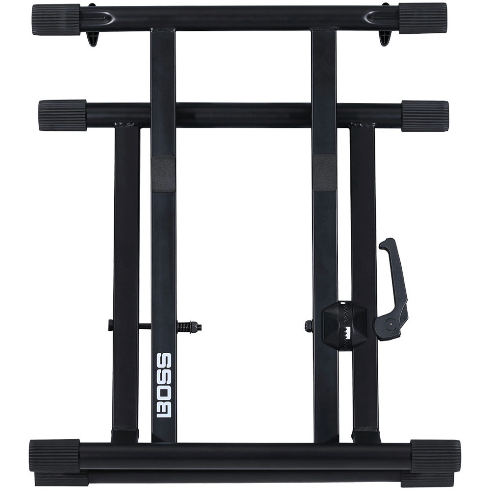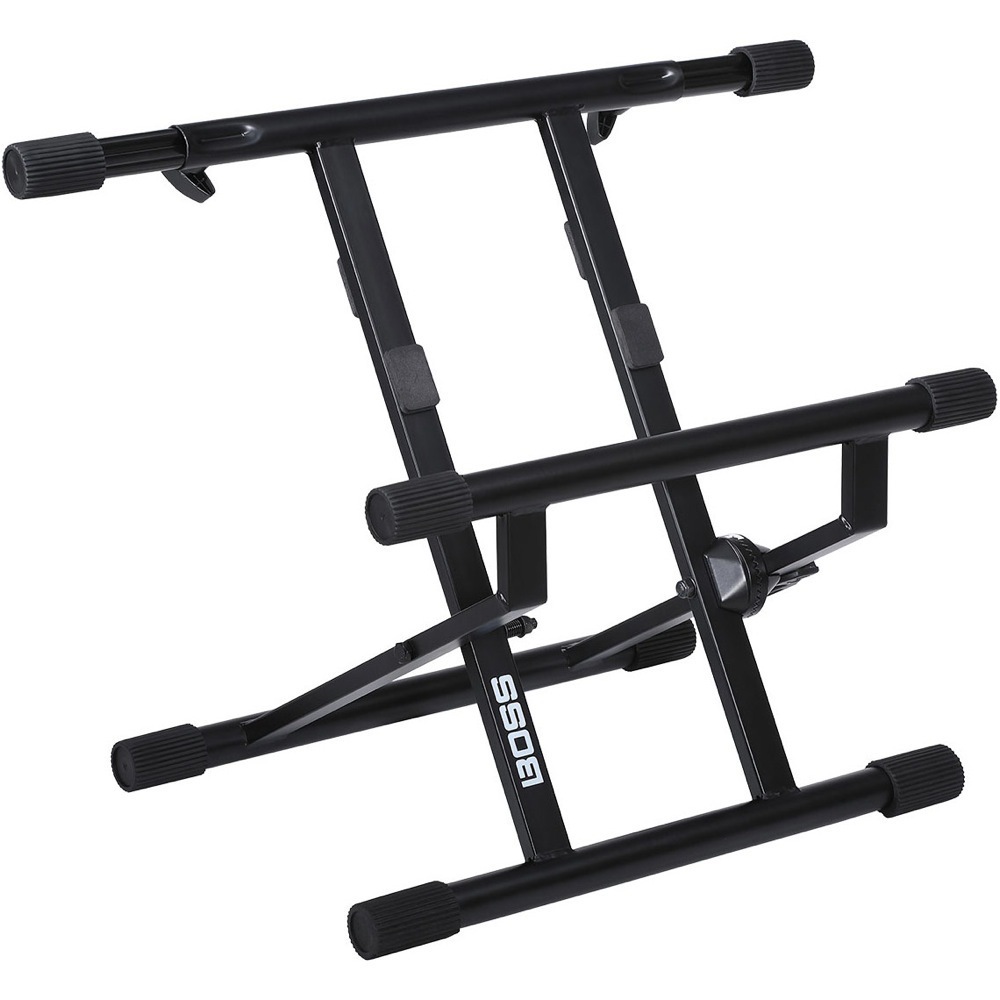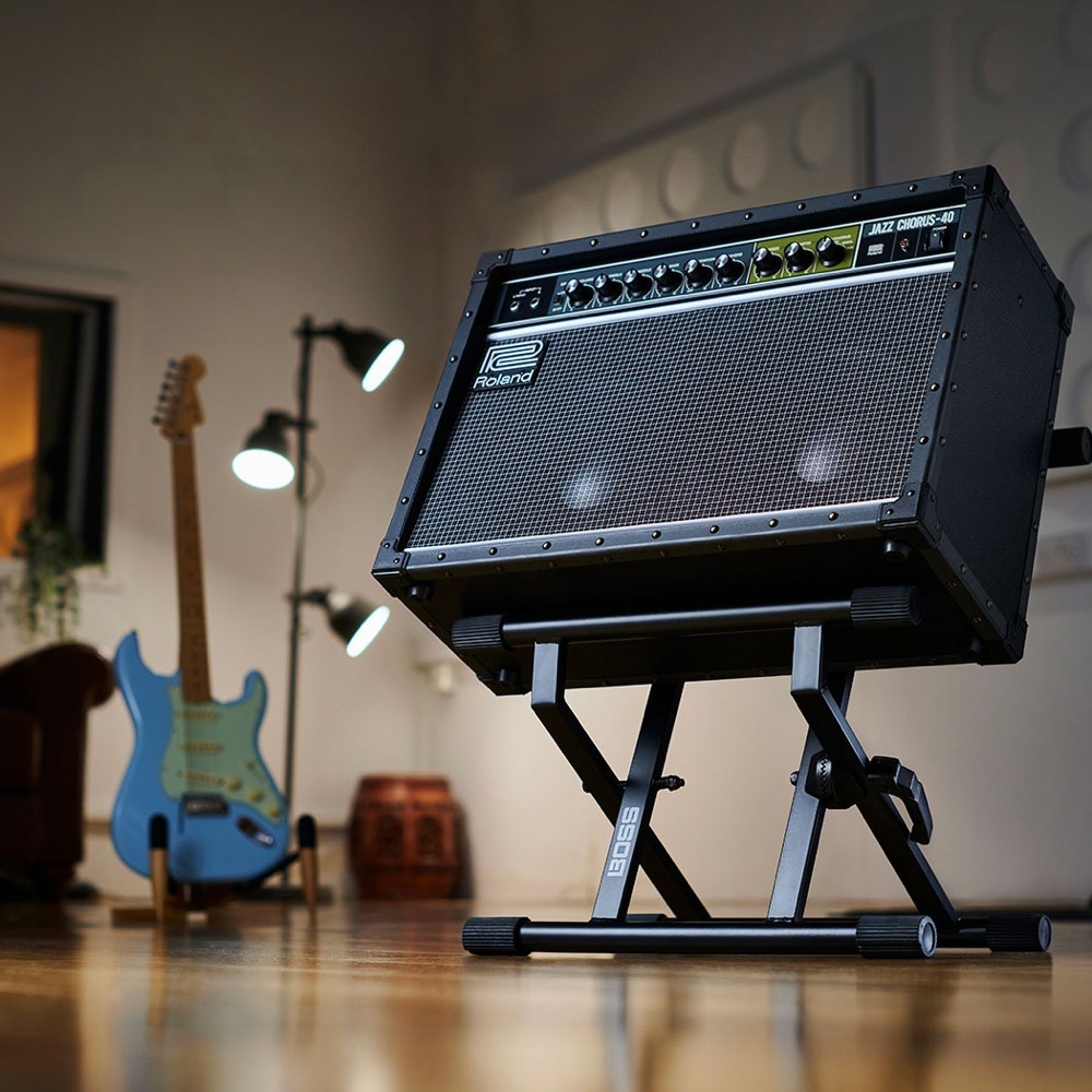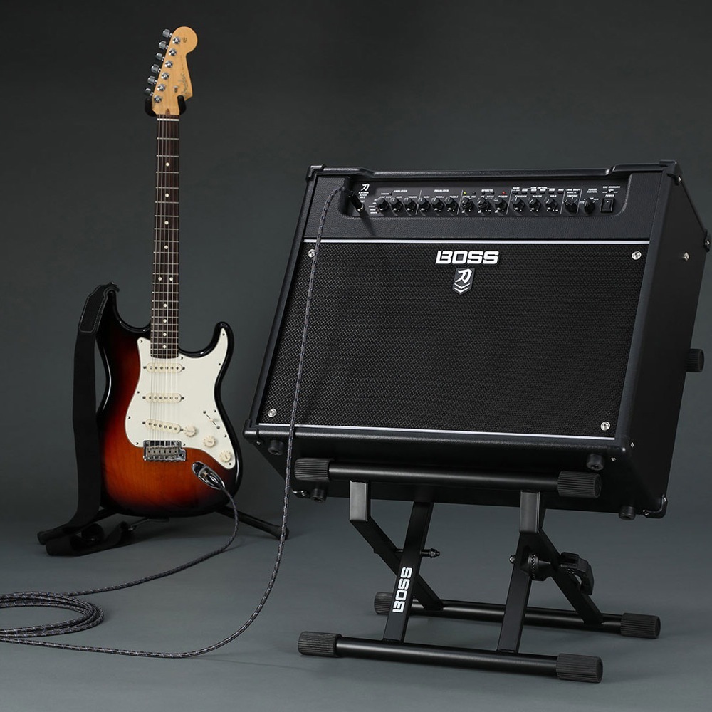 BOSS BAS-1は、BOSS KatanaシリーズやRoland Blues Cubeシリーズなど、様々なコンボタイプのアンプに対応するスチール製の堅牢なアンプ専用スタンドです。BAS-1にアンプを設置することにより、自宅やスタジオ、リハーサル、ステージなどのシーンでお気に入りのサウンドをプレイヤーにより近い状態で安定してモニタリングすることが可能です。アンプの背面を支えるパイプの幅は調節可能であり、様々なサイズのアンプに対応します。持ち運びや収納にも便利な折り畳み式でセッティングは極めてシンプル。両足のアジャスターを調整することにより床面との微調整も可能です。