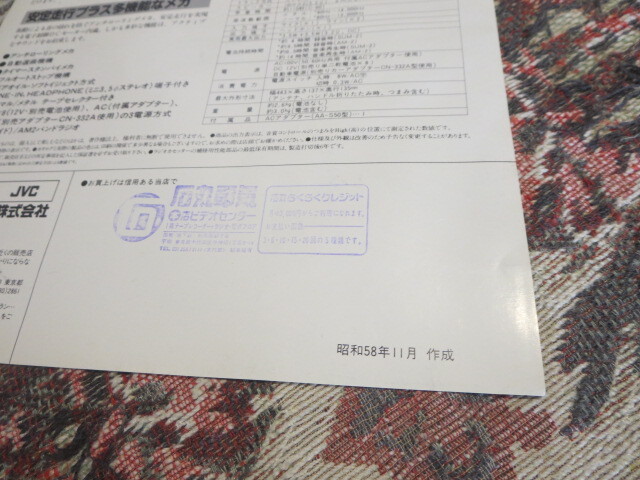 タイトルカタログ ビクター FMワイド/AM2ハンド ステレオカセッター RC-S50 昭和58年11月