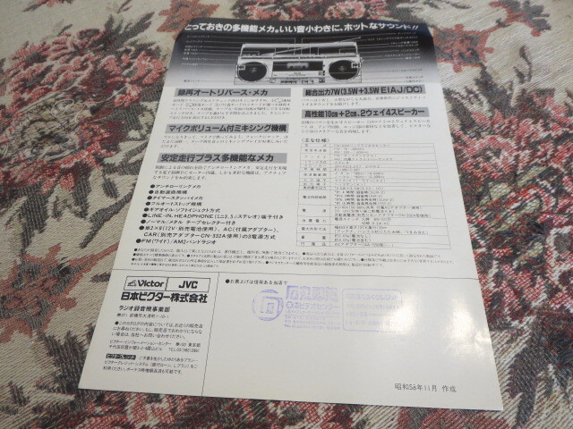 カタログ ビクター FMワイド/AM2ハンド ステレオカセッター RC-S50 昭和58年11月
