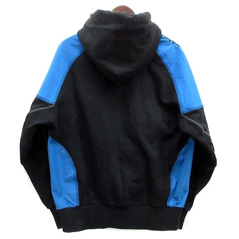 フェンチェンワン Feng Chen Wang スウェット 切替 パーカー プルオーバー French Terry Hoodie ブルー ブラック 青 黒 XS メンズ