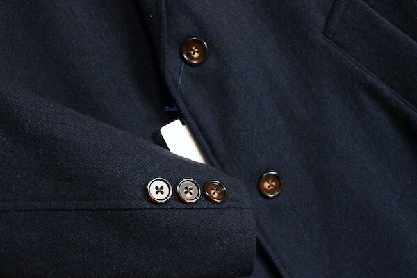 《素材》 ポリエステルなどの合成繊維と再生繊維のレーヨンを混紡して織り上げたへリンボンの素材を 使用しています。 太い紡毛糸を使ったざっくりした感じの織物なので、防寒性に優れています。