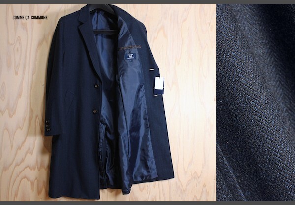 新品 コムサコミューン/COMME CA COMMUNE 秋冬 ウールライク ヘリンボーン ツイード チェスターコート S/紺/定価1.9万円